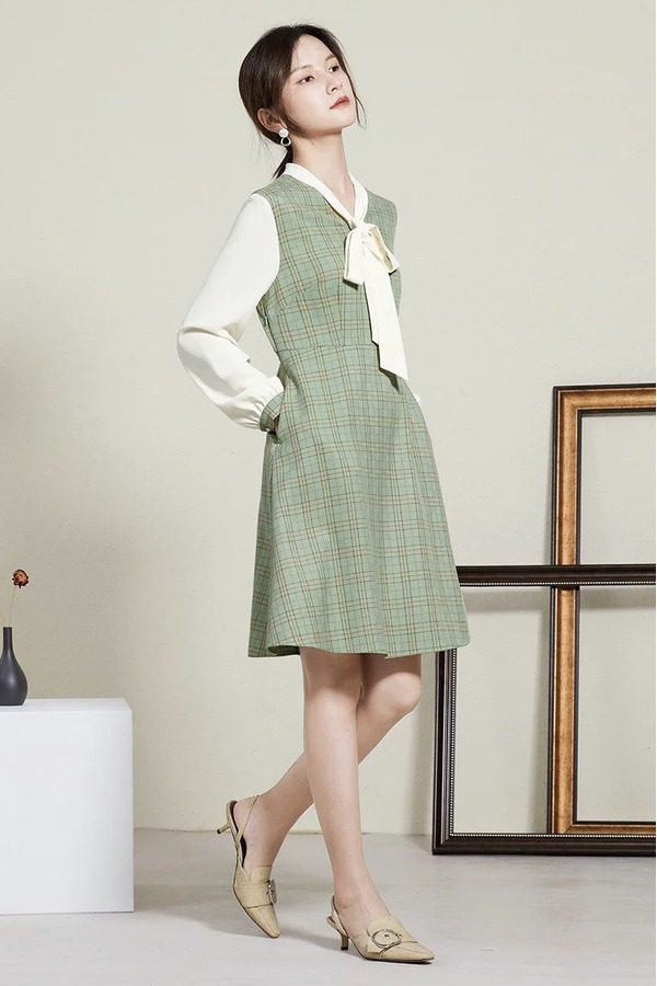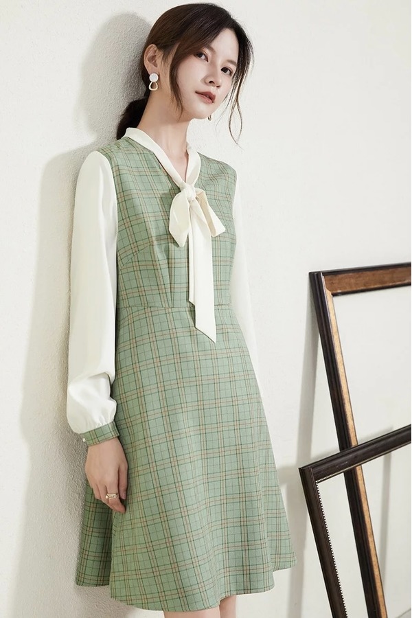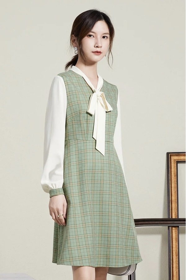 熙然 早春穿搭淑女减龄假两件拼接连衣裙 15679