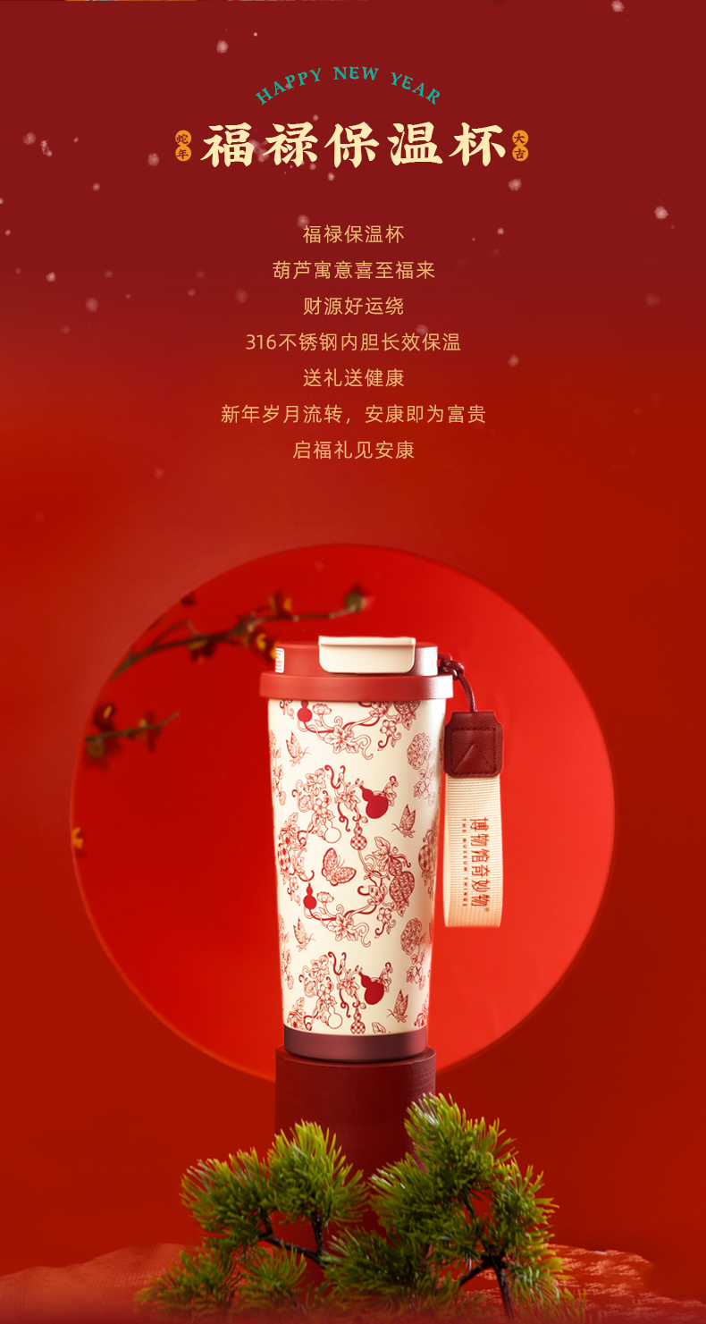2025年新年礼盒岁时请福非遗皮影新春福禄保温杯高端企业定制年货