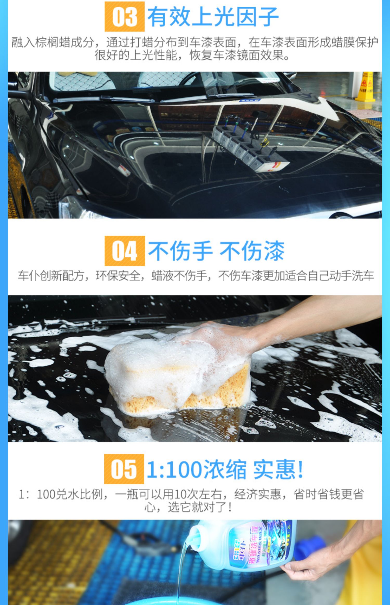 车仆带蜡洗车液 苹果绿洗车液 使用简单 泡沫丰富 清洁力强