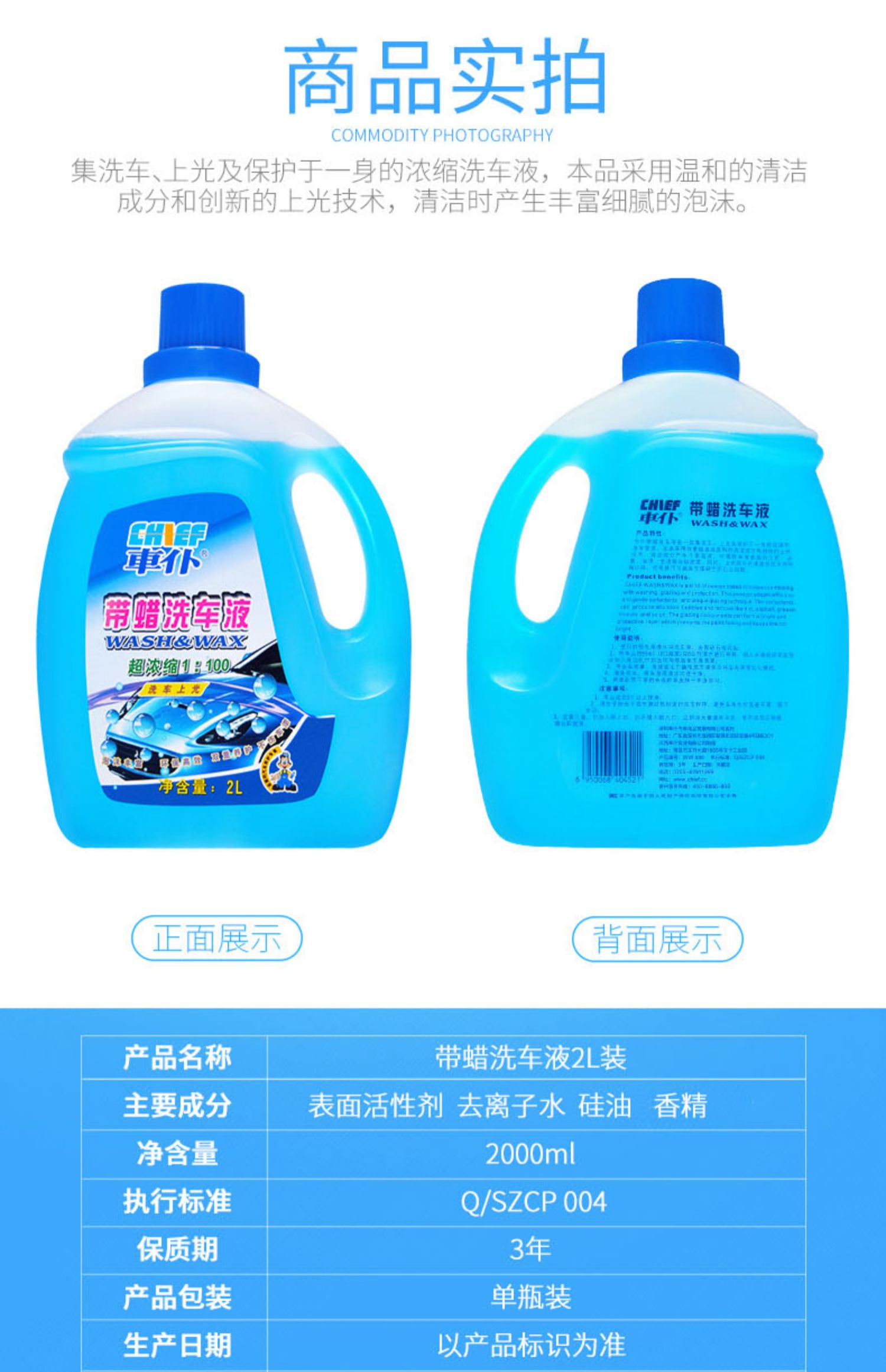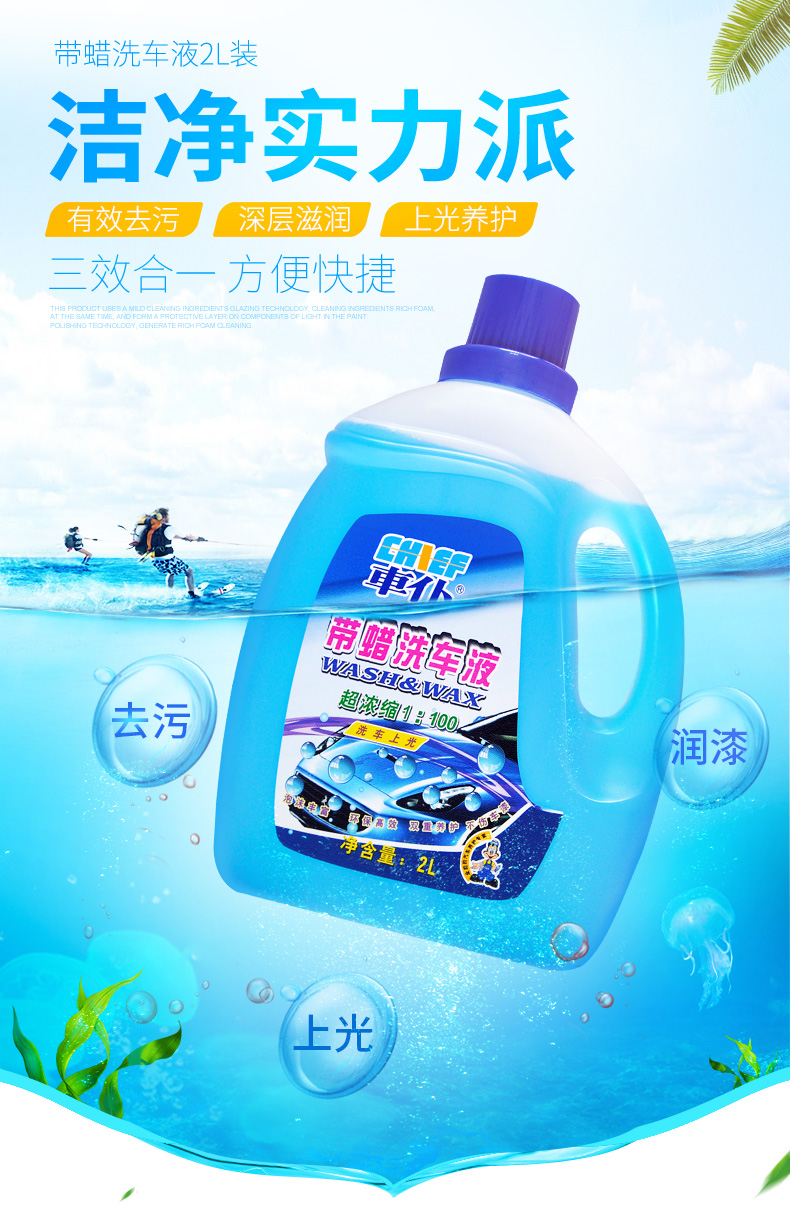 车仆带蜡洗车液2L套装 强效去污 车面打蜡 滋润车漆