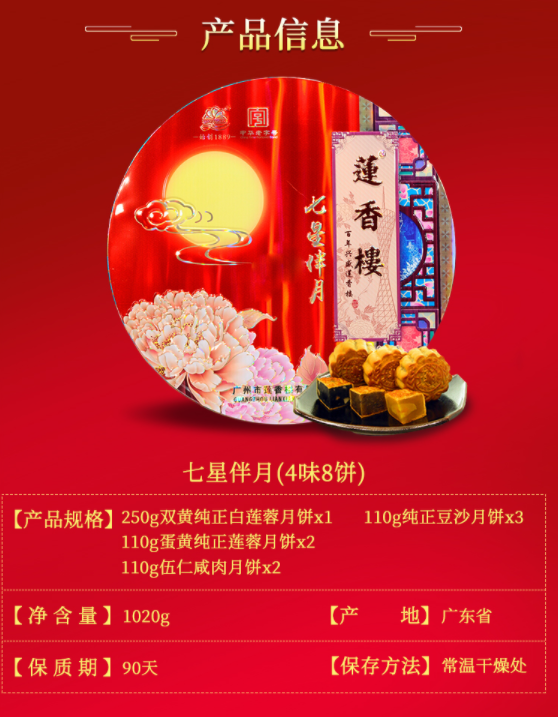 莲香楼经典 | 七星伴月月饼礼盒(250g*1+110g*7)8粒装