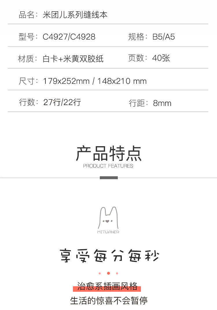 齐心缝线本C4927 米团儿系列B5 40张