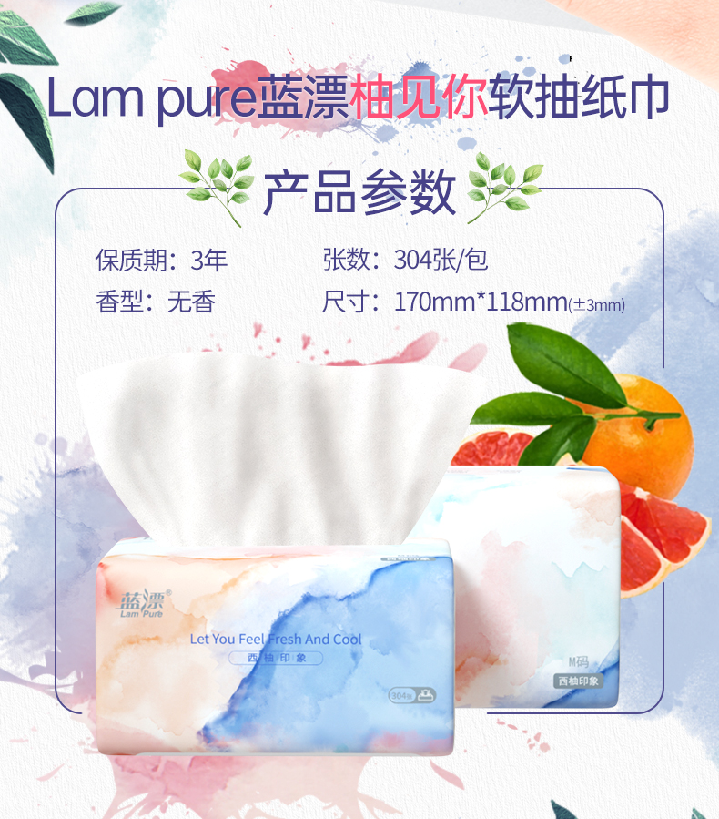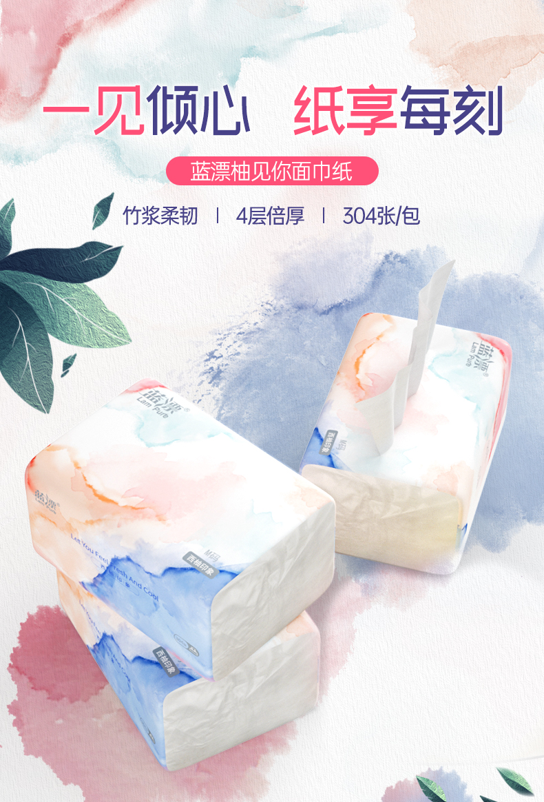 【自营】蓝漂竹浆白色抽纸8包304张4层76抽LP-29176-A