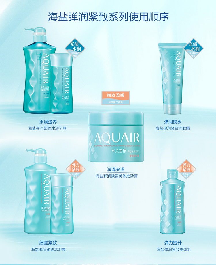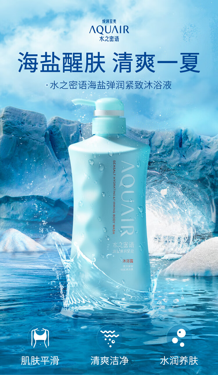 水之密语(AQUAIR)沐浴露男女通用 海盐沐浴露600ml 滋润醒肤紧致沐浴乳