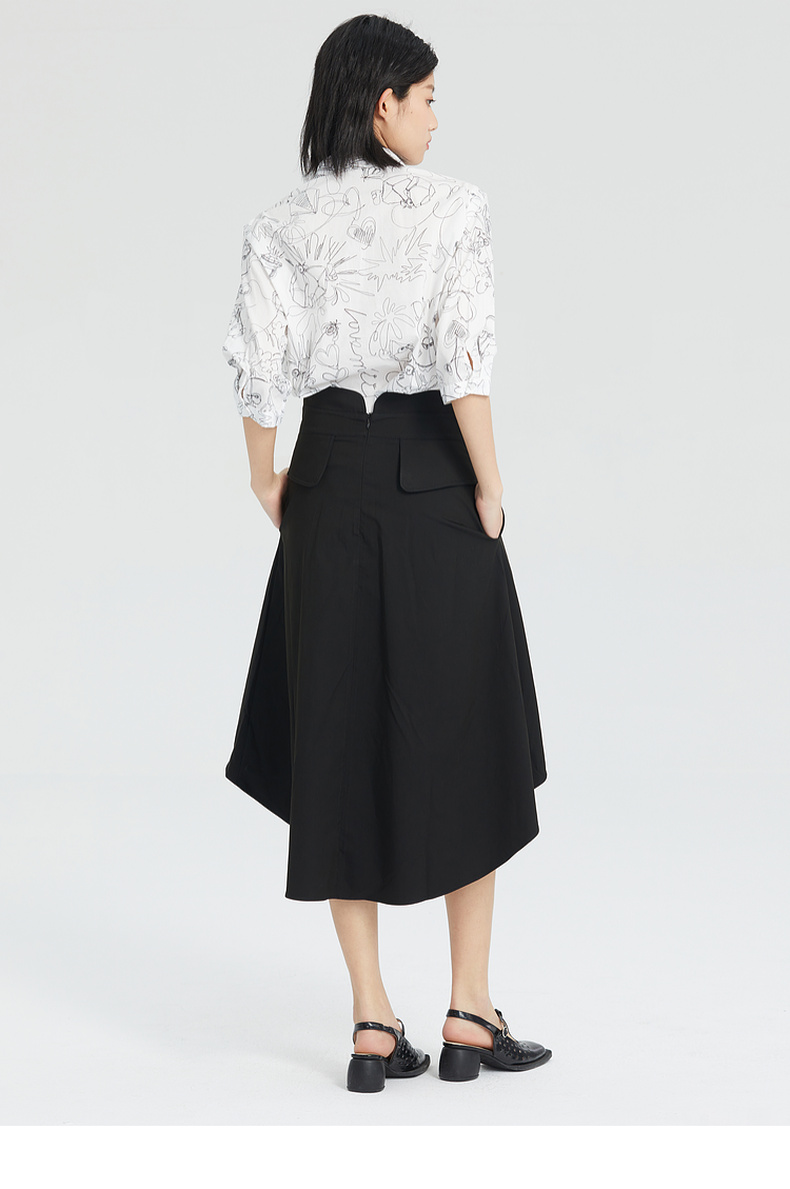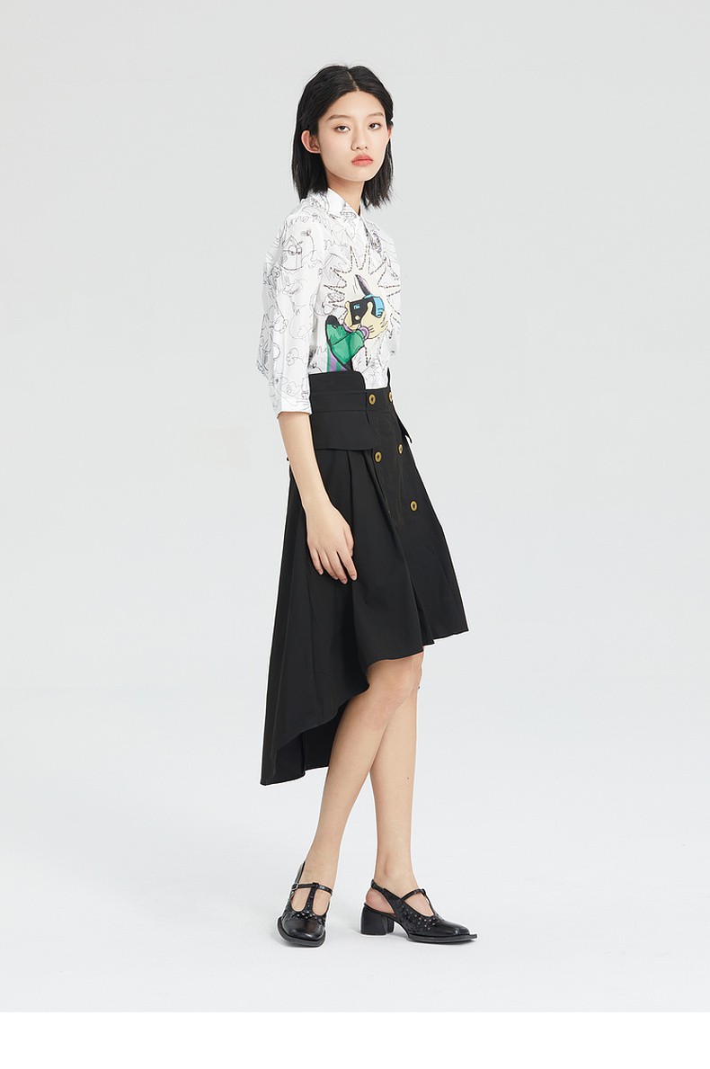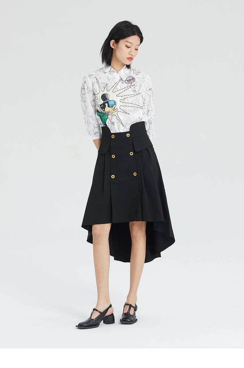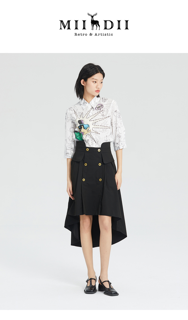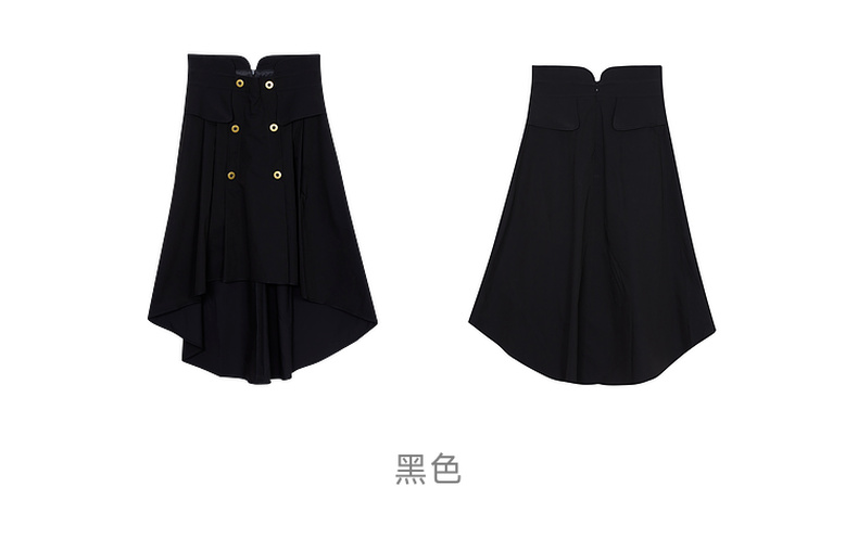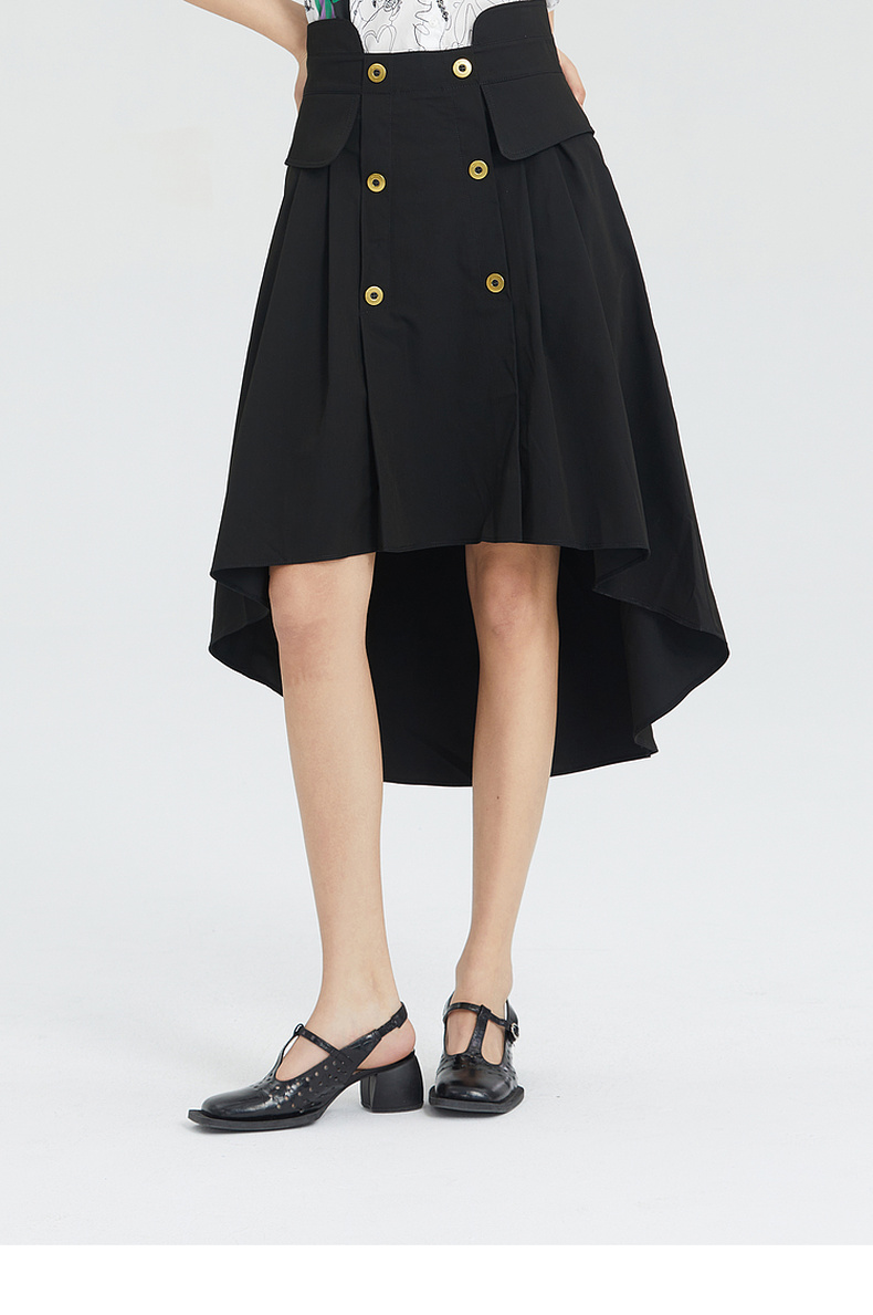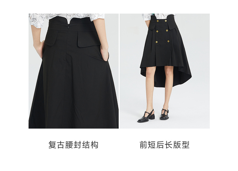 谜底2023夏季简洁优雅双排扣前短后长高腰A型外搭半裙235MB6015
