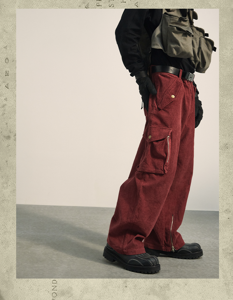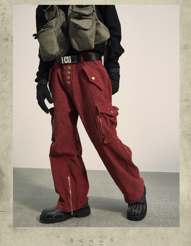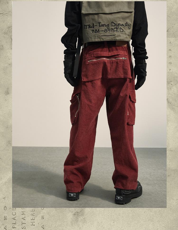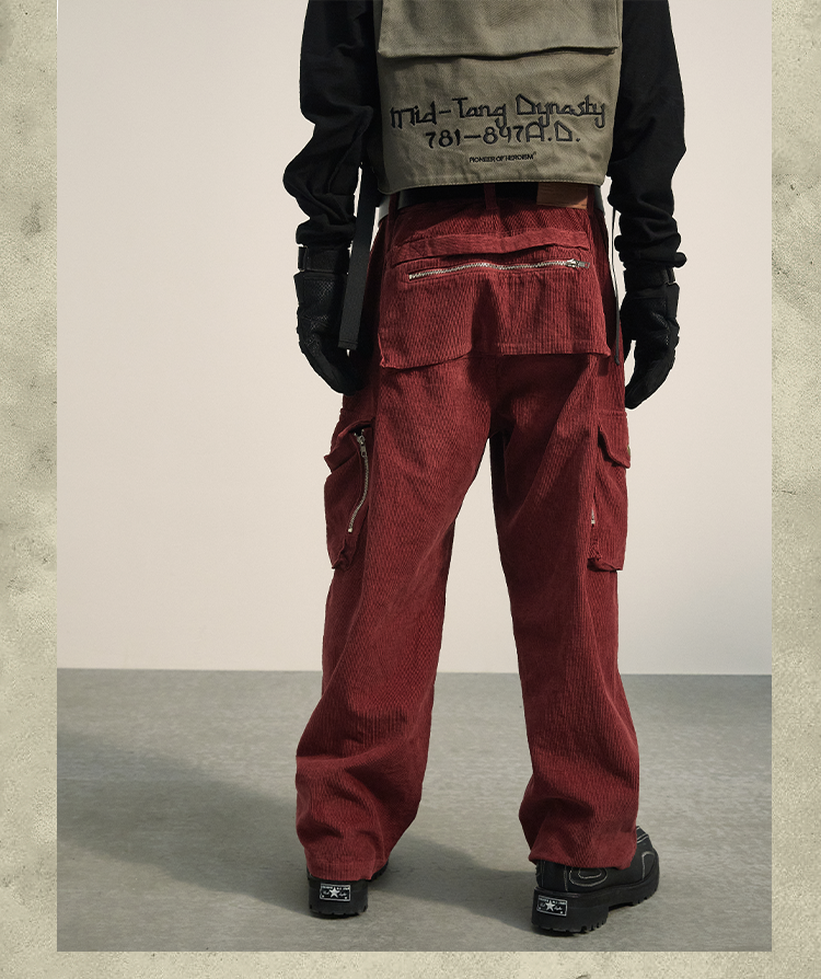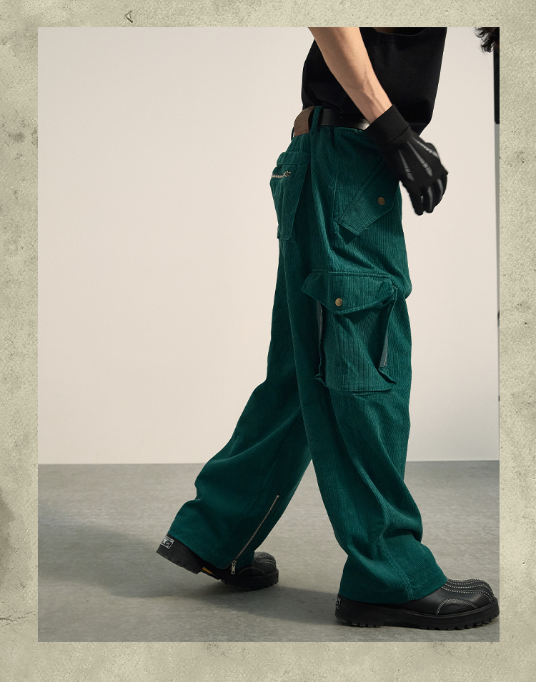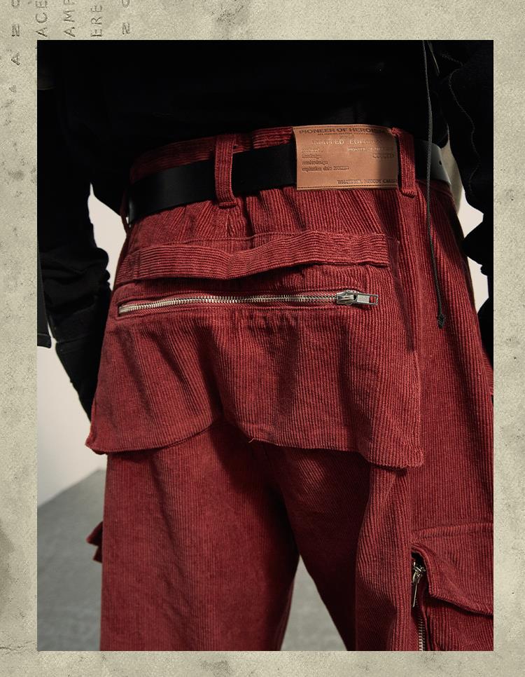 POH 古着感做旧宽松直筒阔腿裤子街头休闲垂坠感灯芯绒国潮长裤男