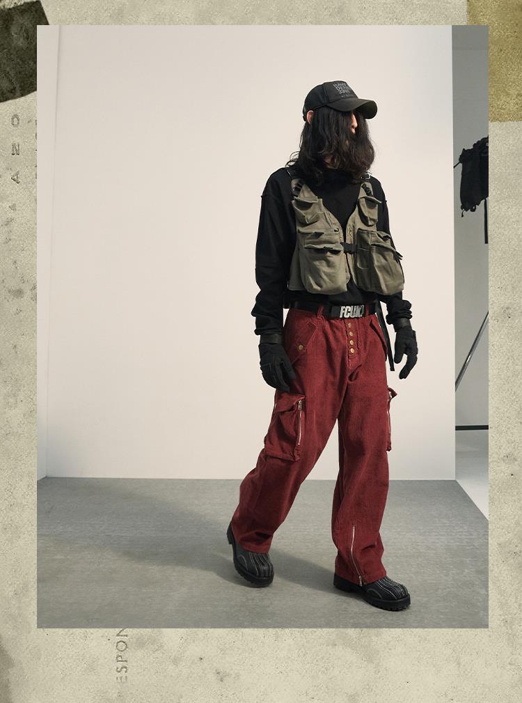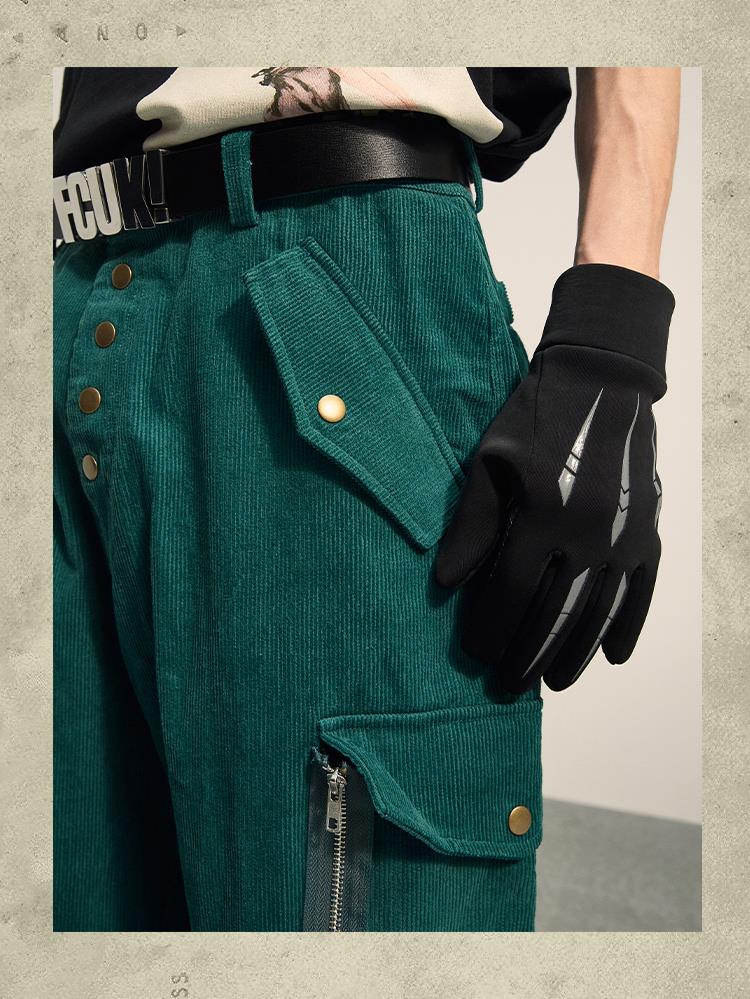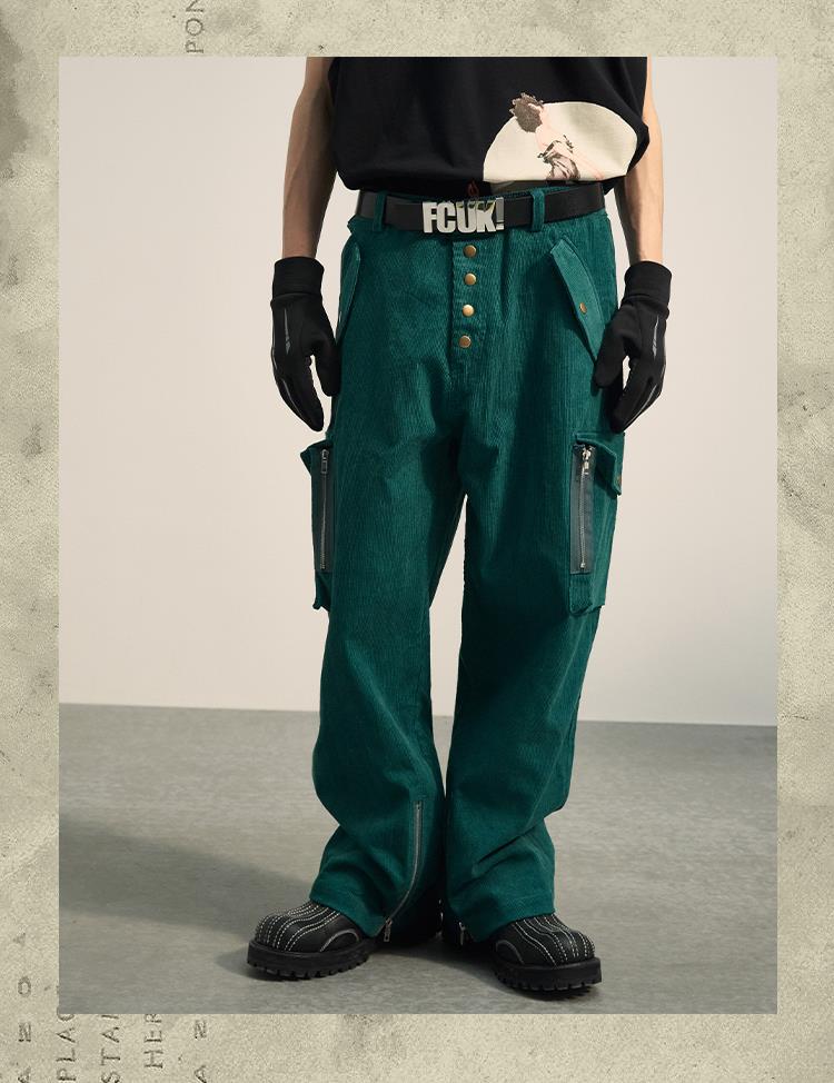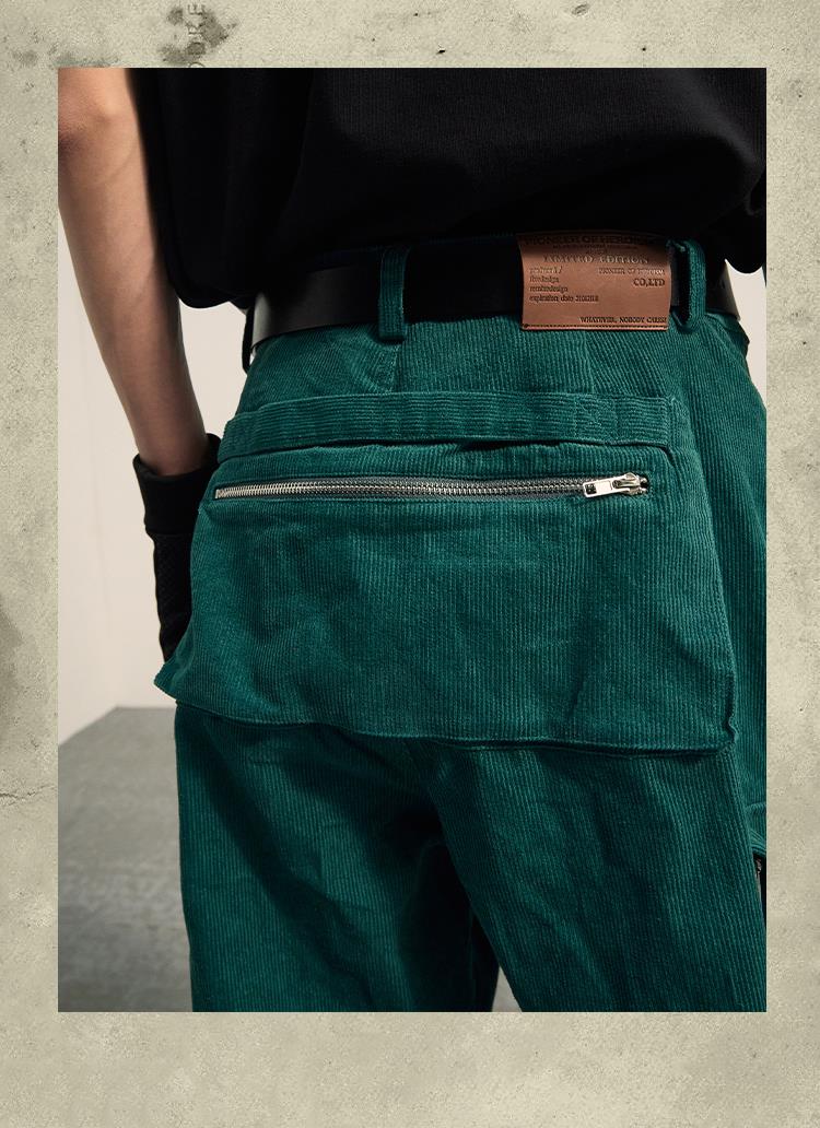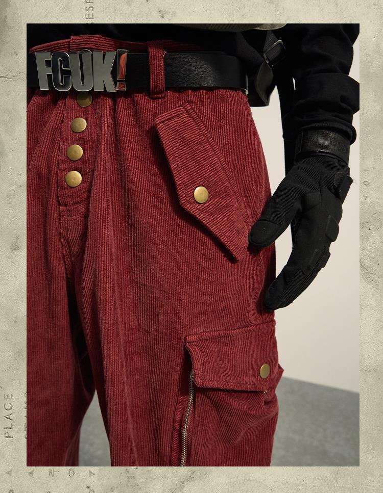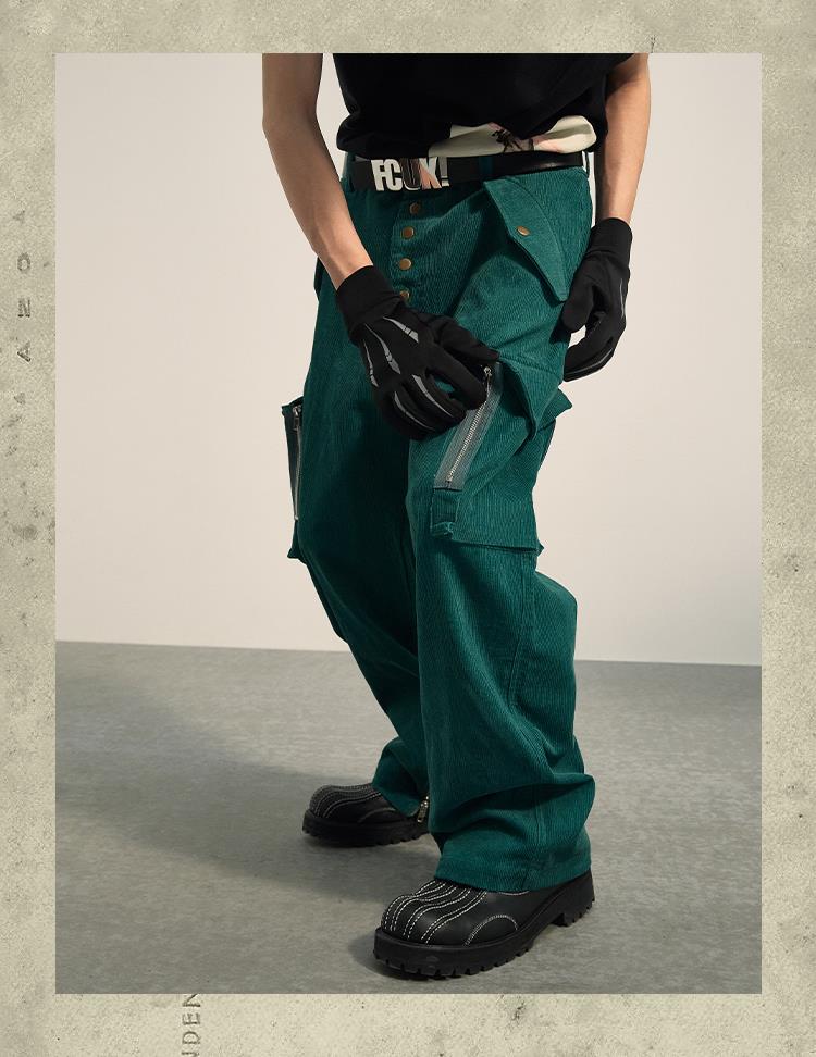 POH 古着感做旧宽松直筒阔腿裤子街头休闲垂坠感灯芯绒国潮长裤男