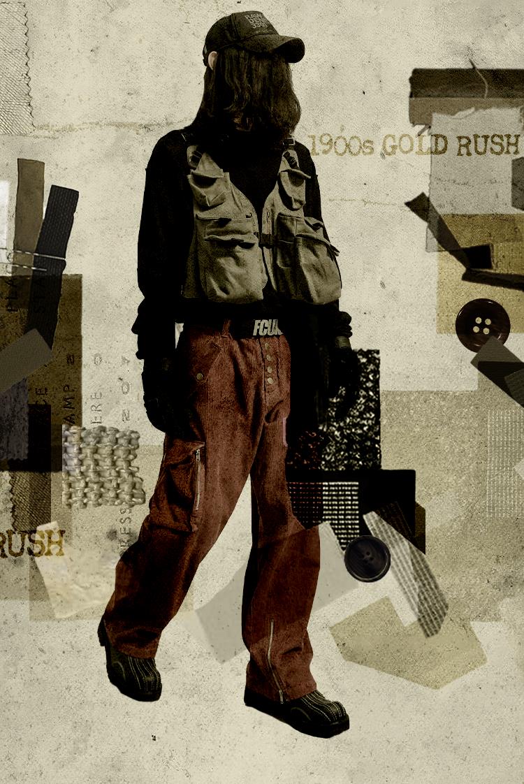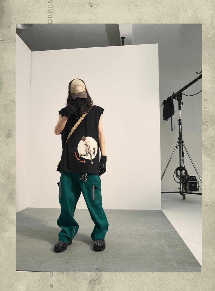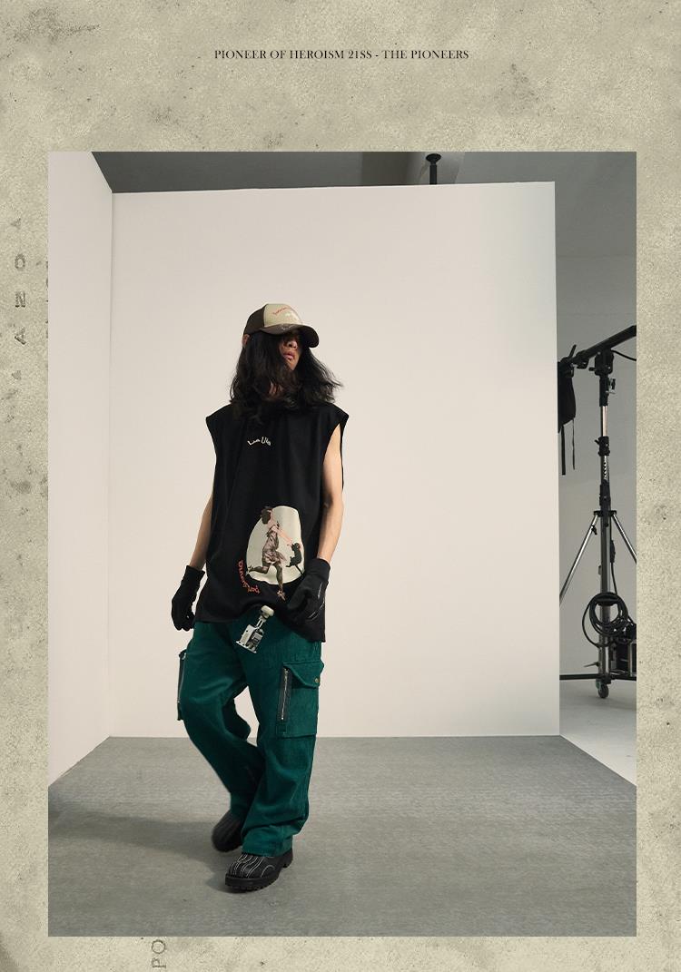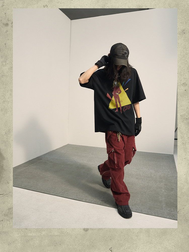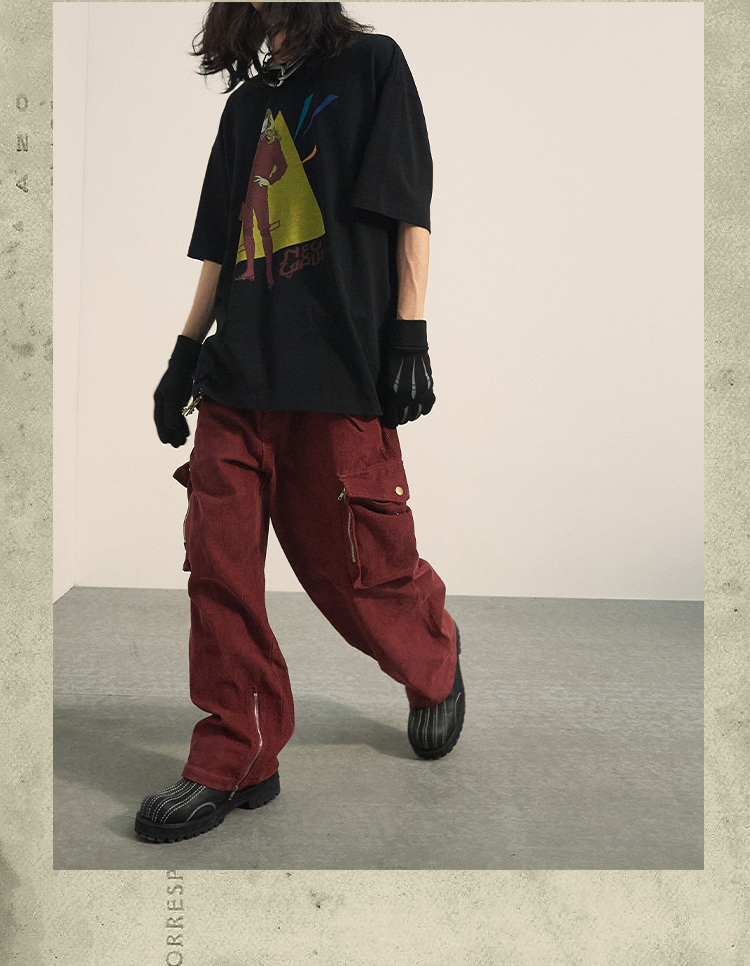 POH 古着感做旧宽松直筒阔腿裤子街头休闲垂坠感灯芯绒国潮长裤男