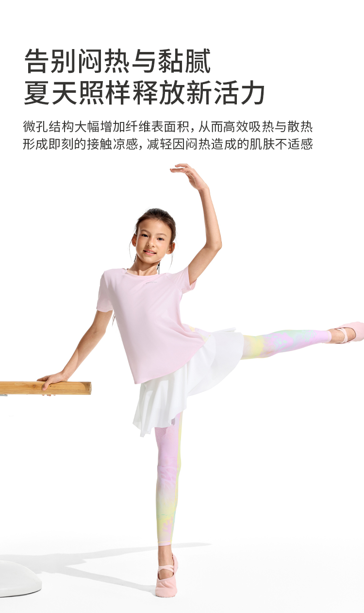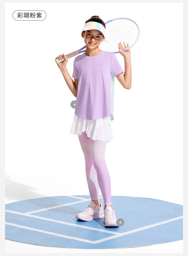 【DR暑假】moodytiger女童短袖T恤夏季轻薄速干圆领上衣运动休闲22210101