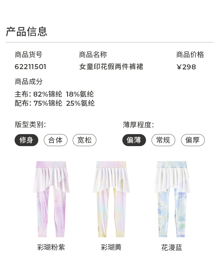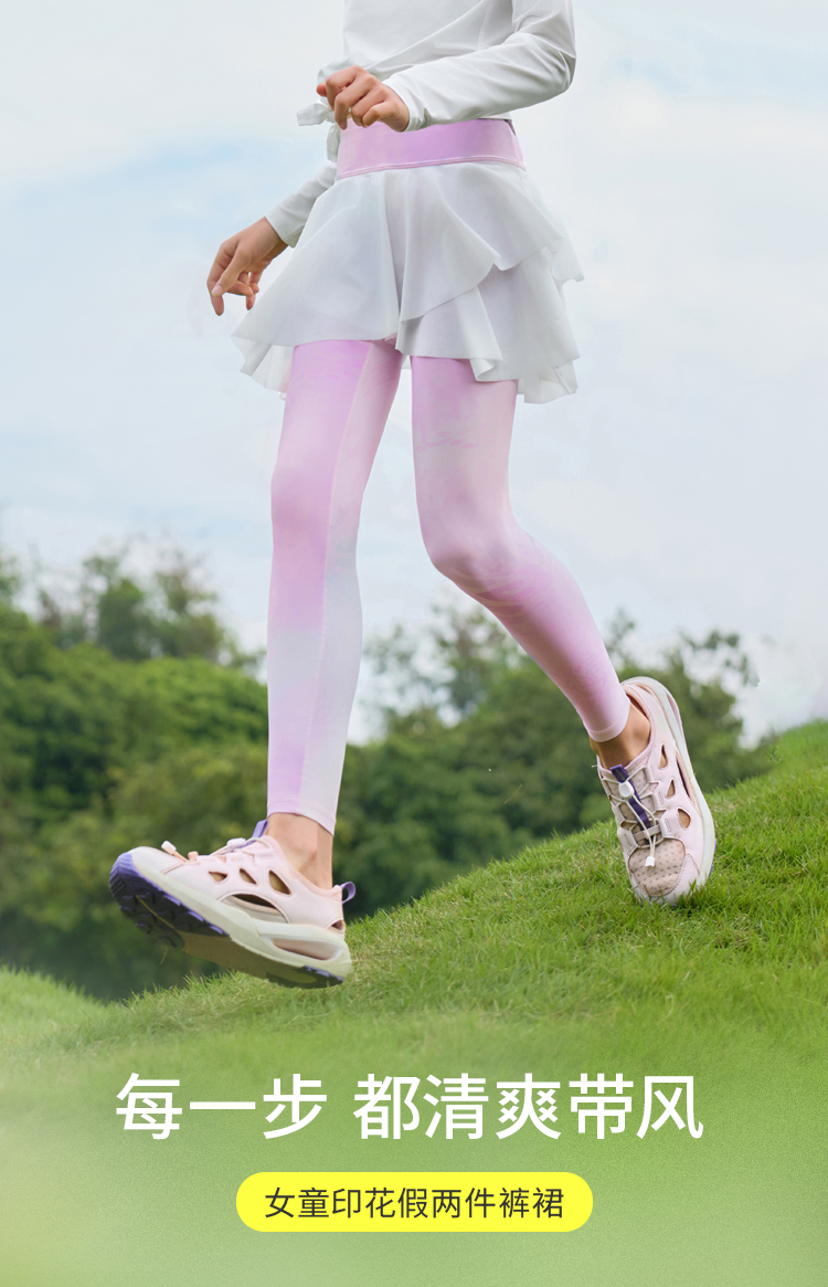 moodytiger女童印花假两件裤裙运动弹力速干外穿春夏62211501