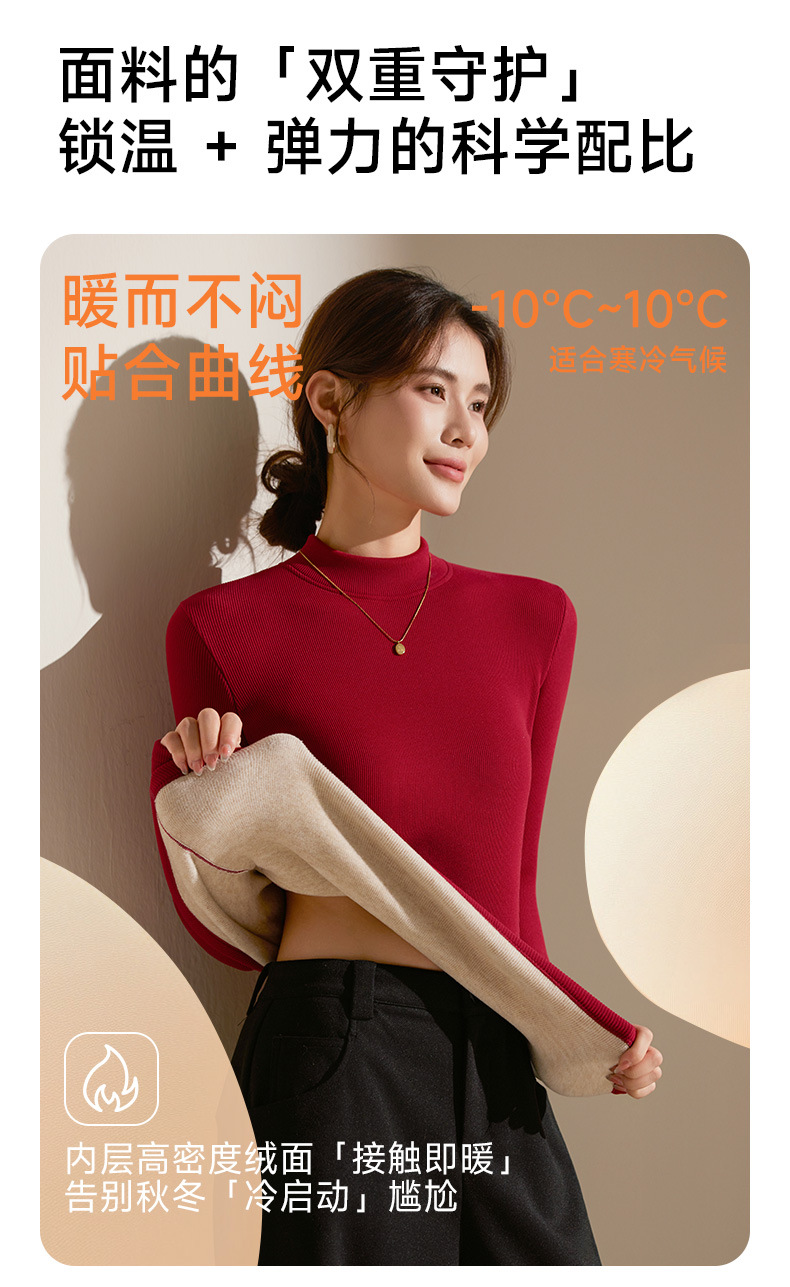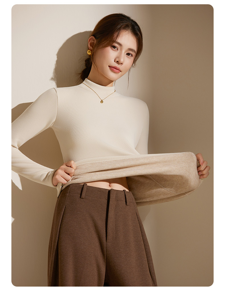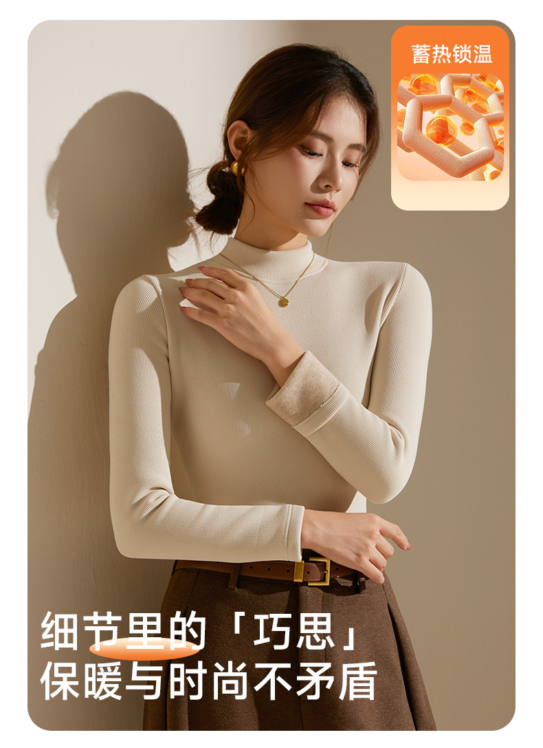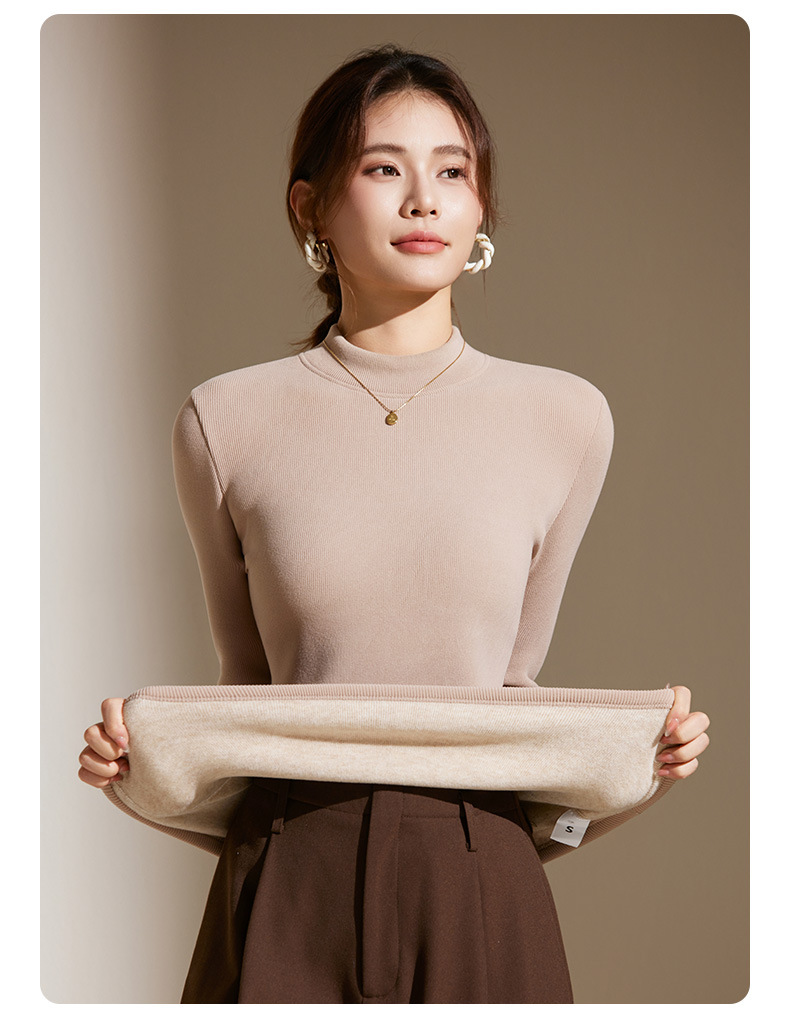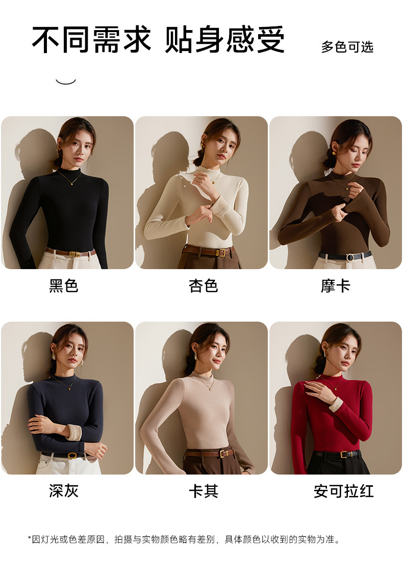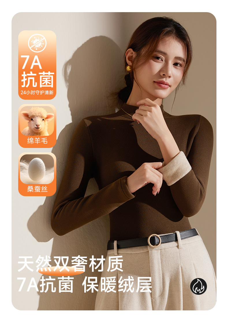【天丝+羊毛+蚕丝】冬季半高领加绒加厚打底衫女内搭保暖上衣修身打底衫秋冬长袖T恤