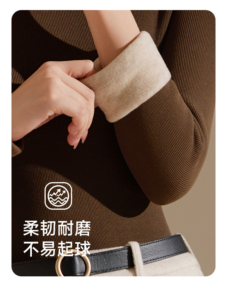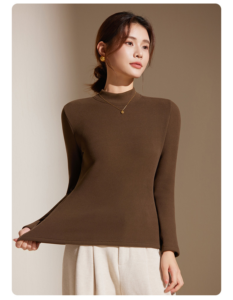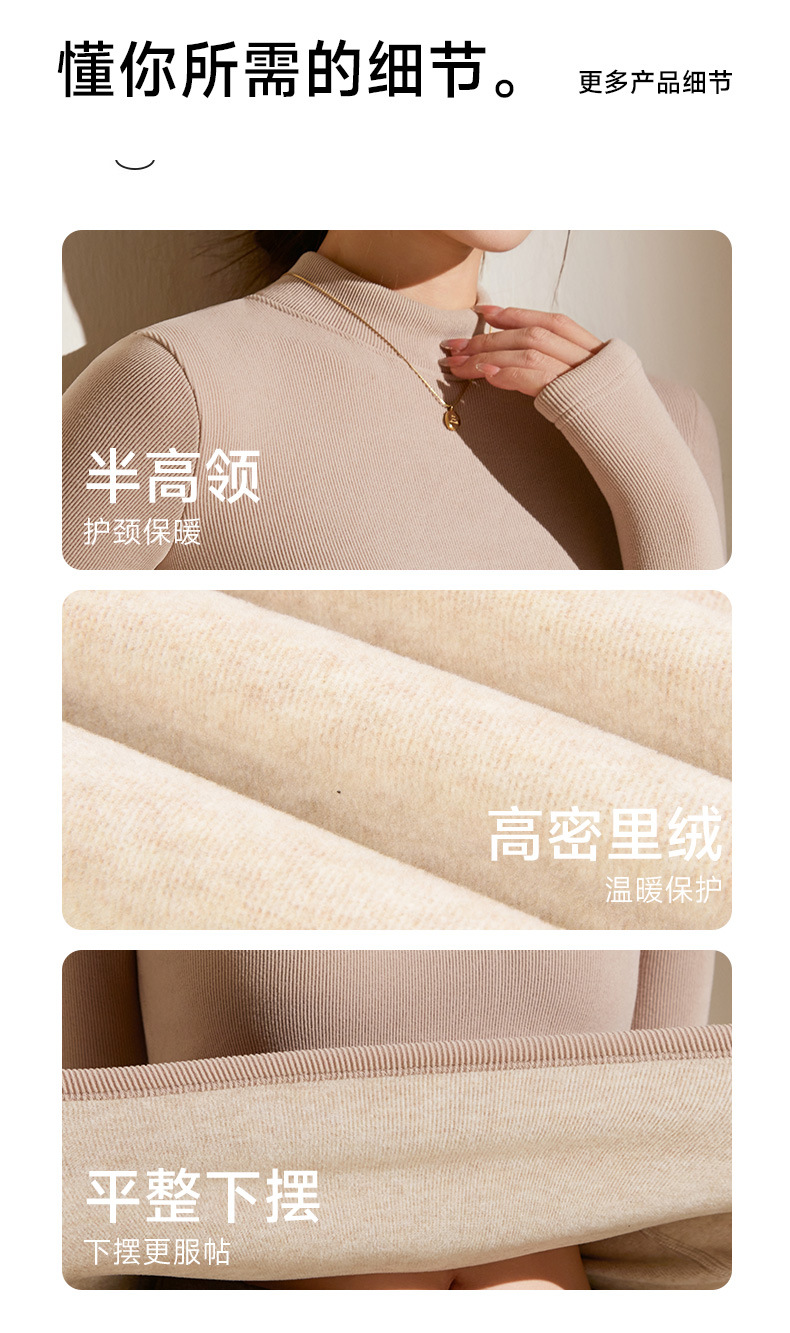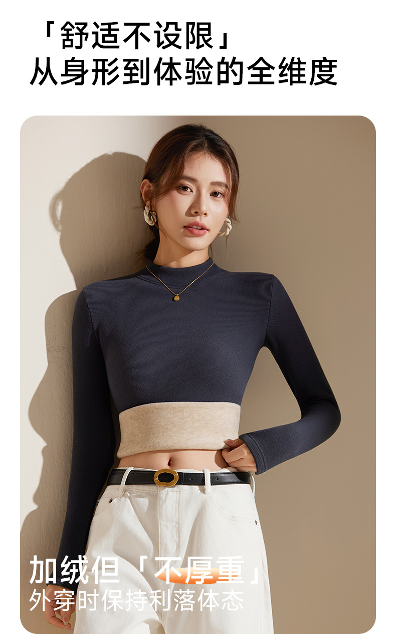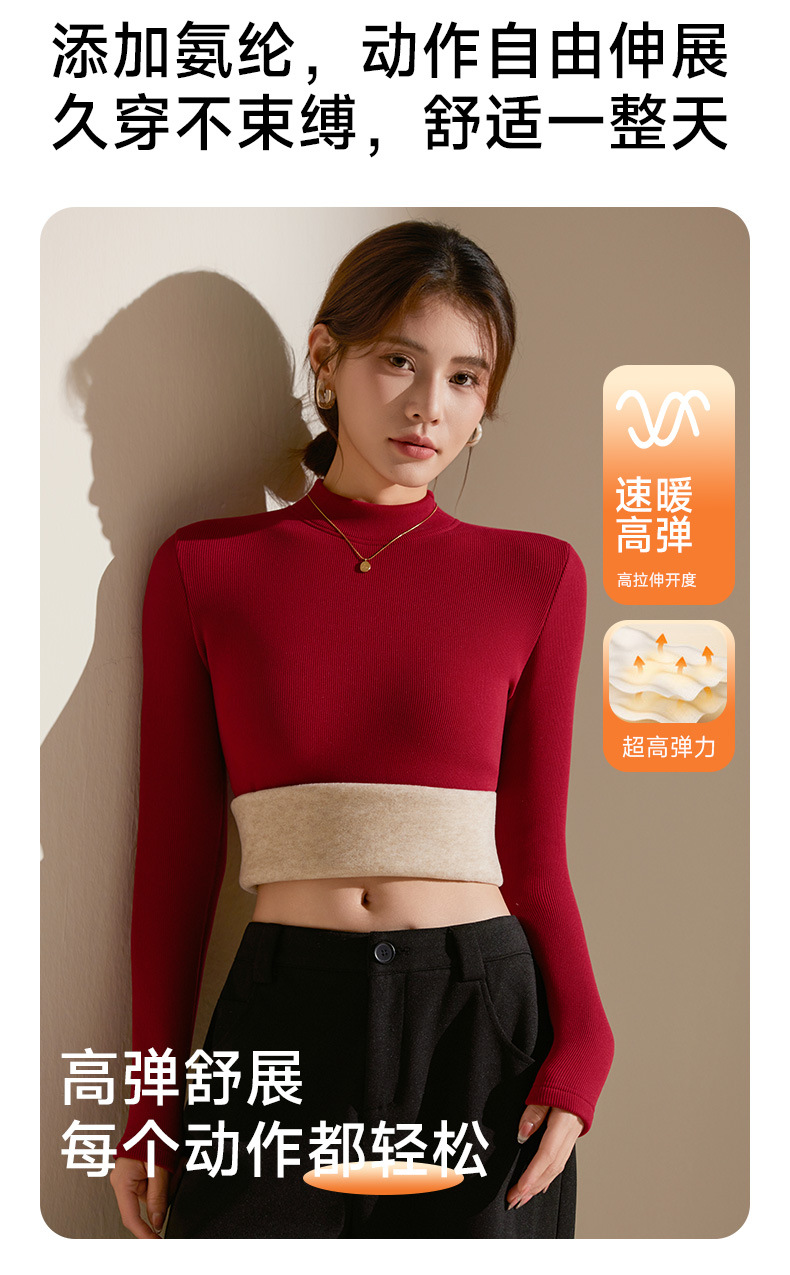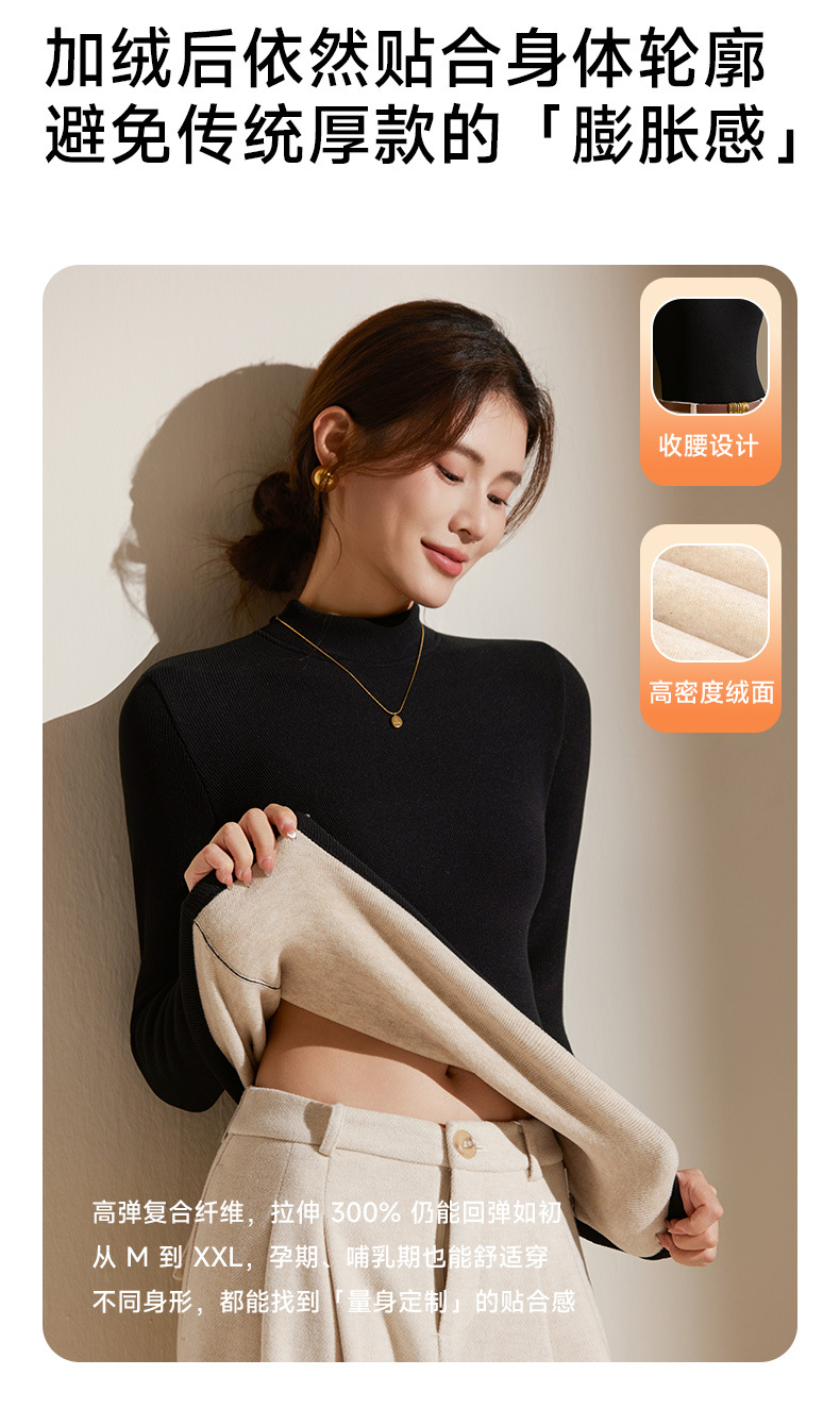 【天丝+羊毛+蚕丝】冬季半高领加绒加厚打底衫女内搭保暖上衣修身打底衫秋冬长袖T恤