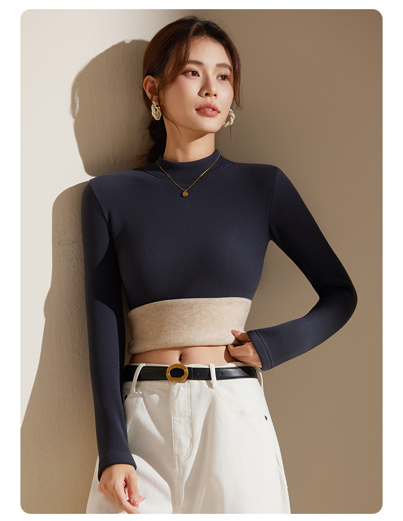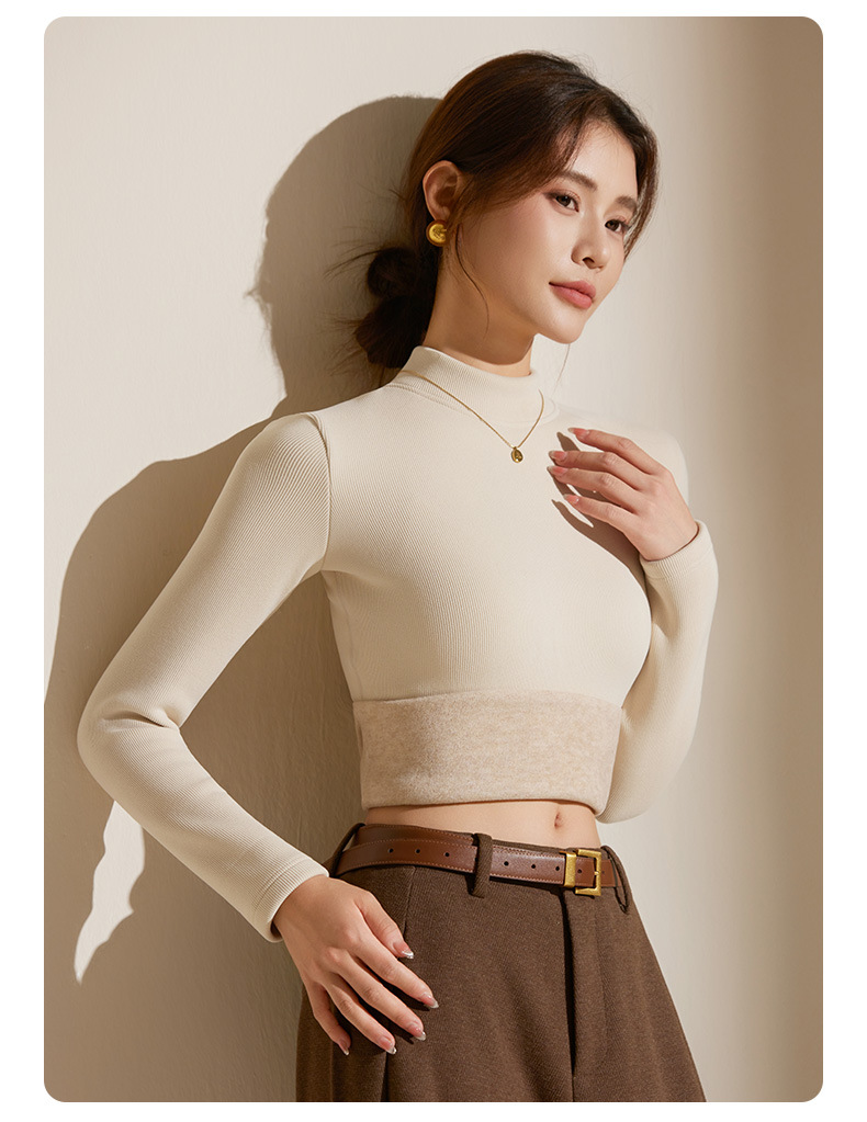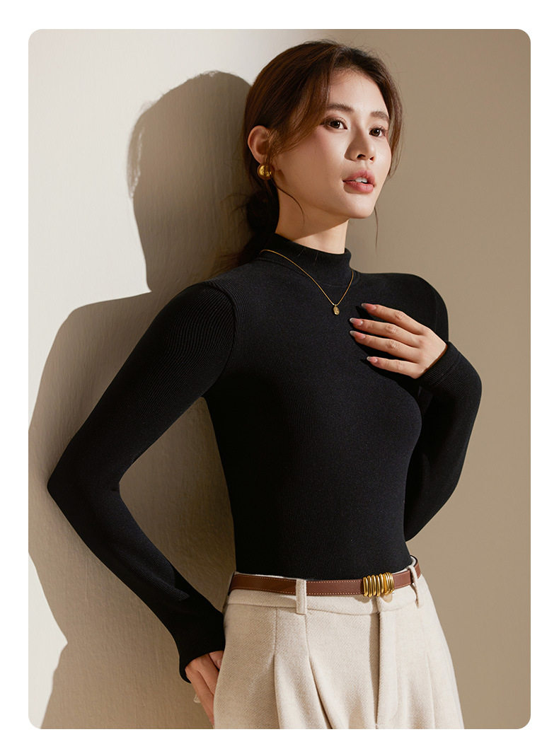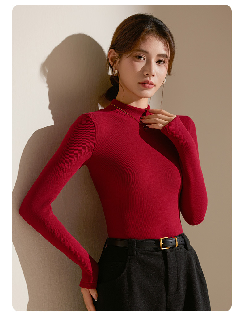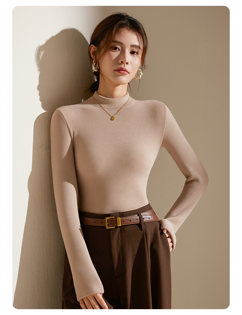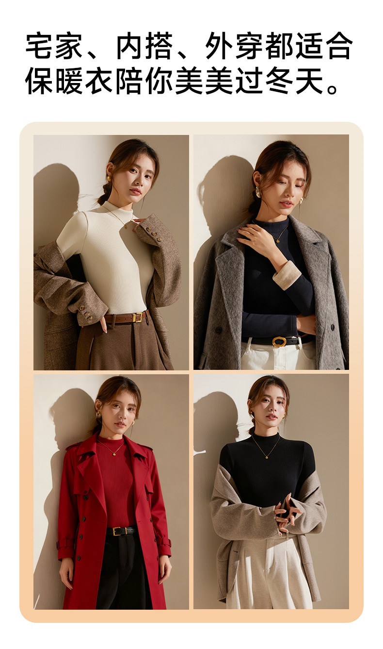 【天丝+羊毛+蚕丝】冬季半高领加绒加厚打底衫女内搭保暖上衣修身打底衫秋冬长袖T恤