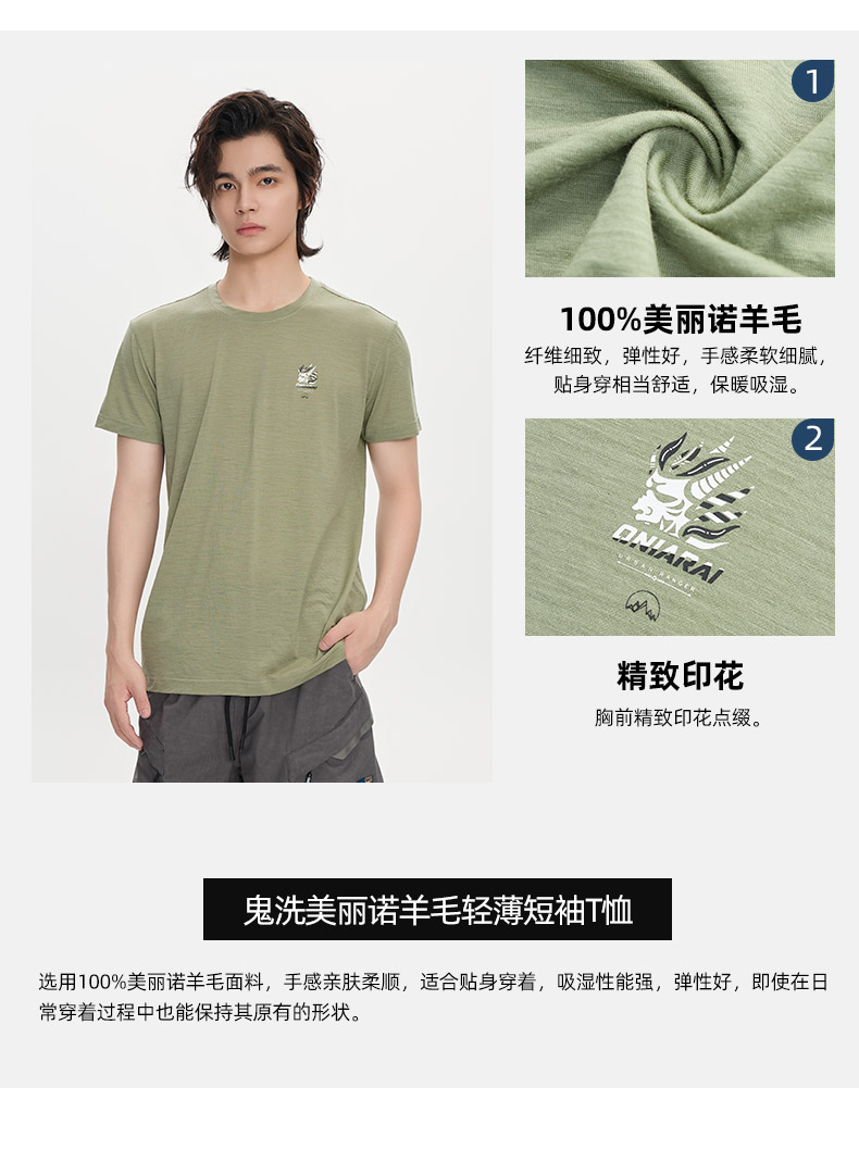 ONIARAI/鬼洗25秋冬美丽诺羊毛轻薄短袖T恤休闲男式短袖 B840289