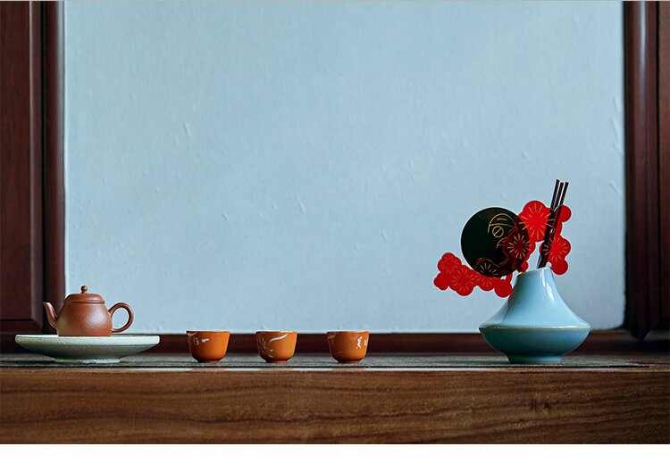 玉青瓷 般若系列 玉砂画面 一壶四杯一茶盘 茶盘包装 般若B(玉砂画面)