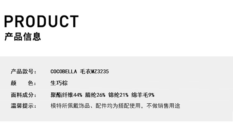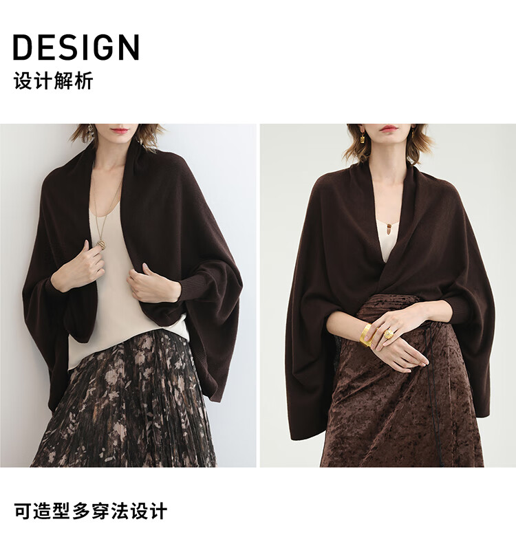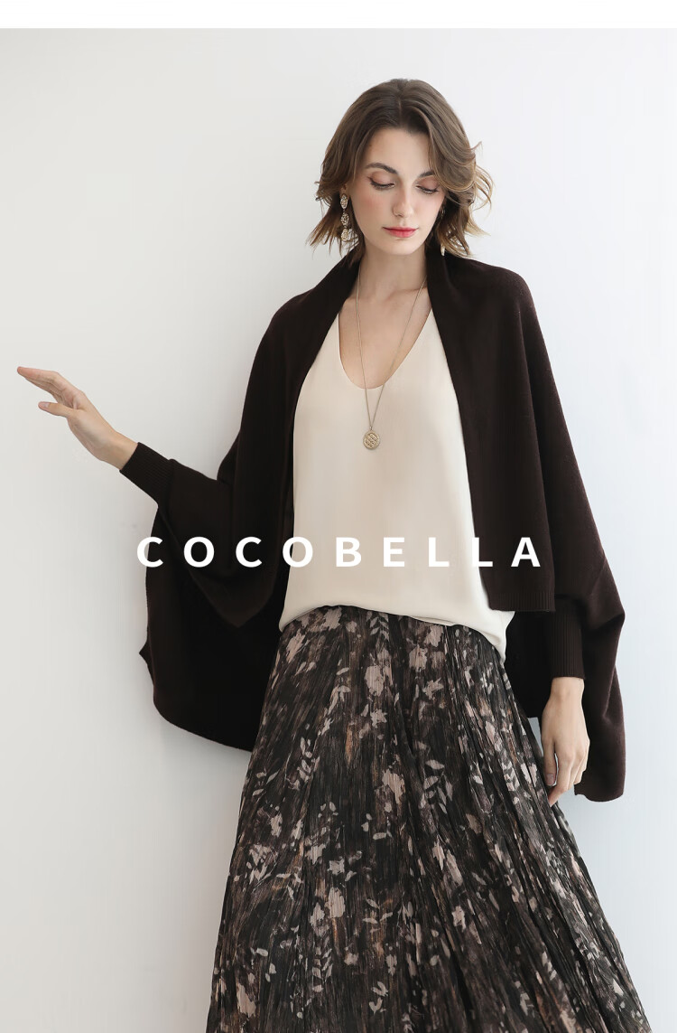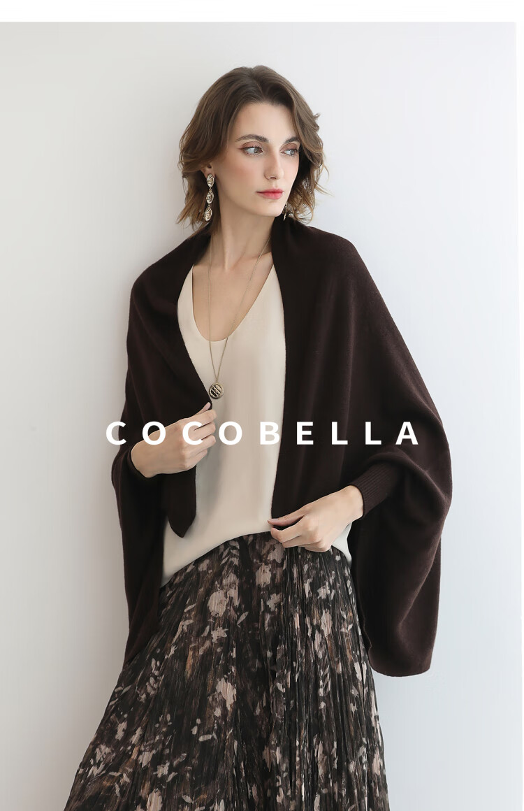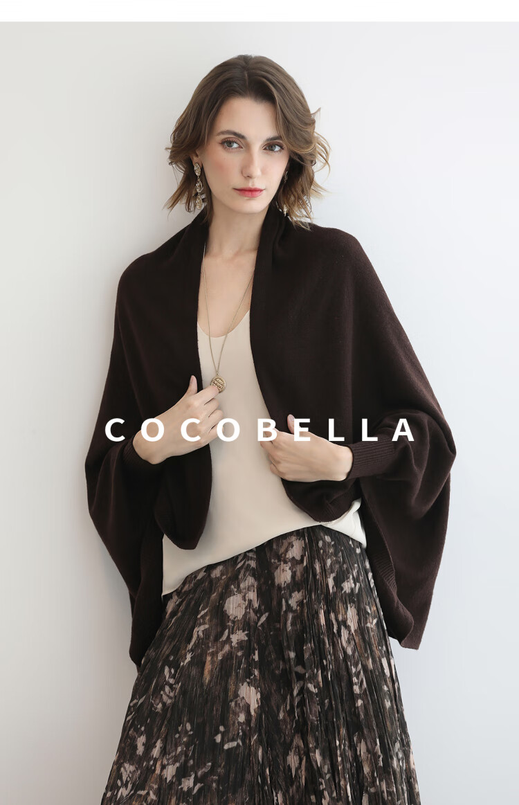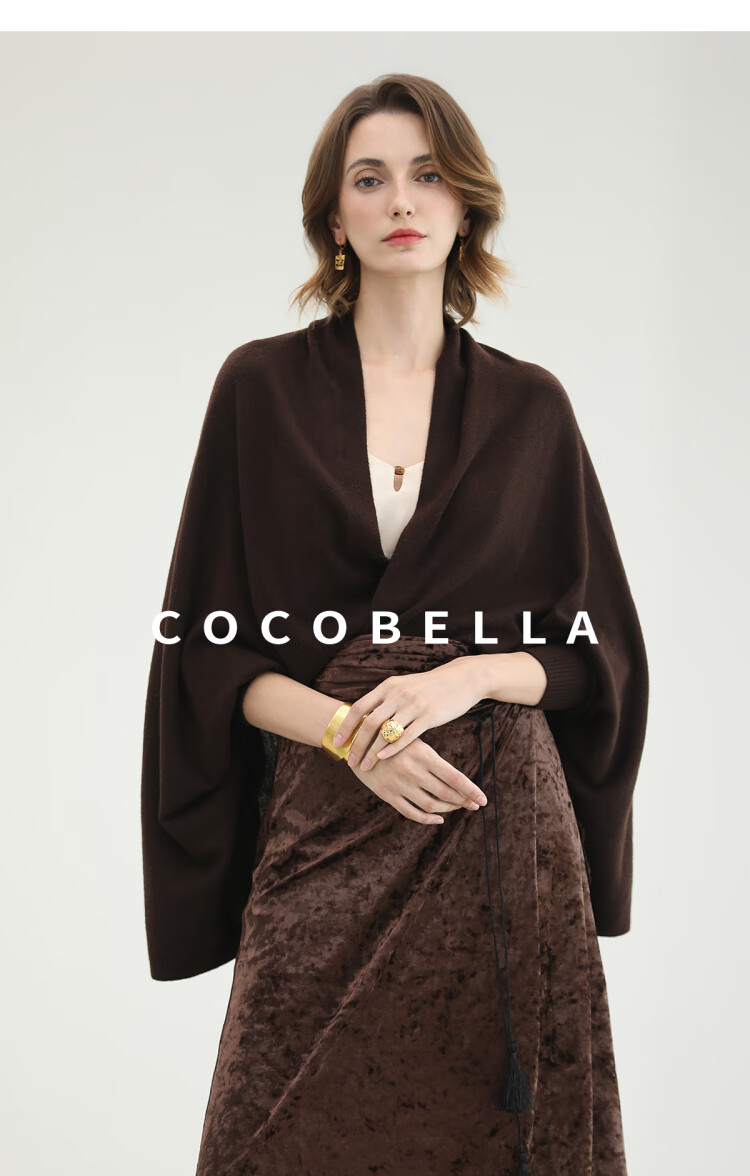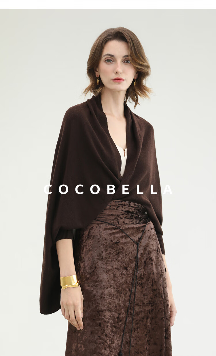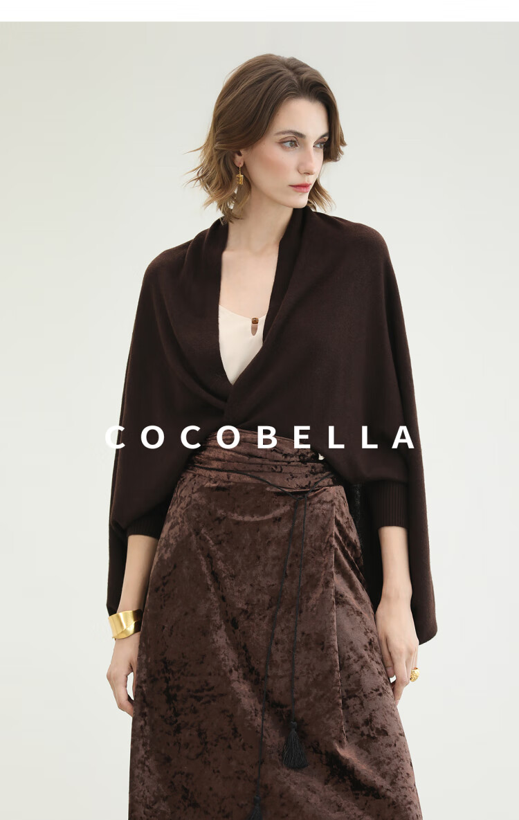 COCOBELLA通勤休闲含羊毛毛衣女松弛感保暖披肩针织衫MZ3235