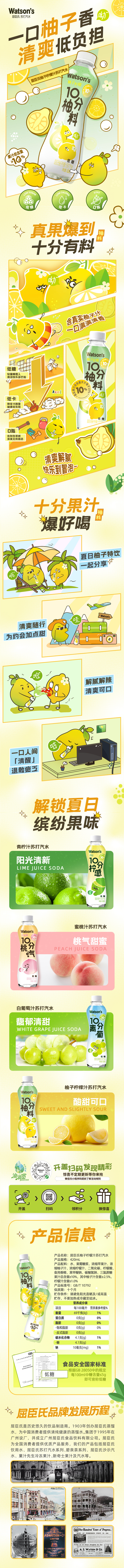 屈臣氏柚子柠檬汁苏打420ml*15瓶 整箱装