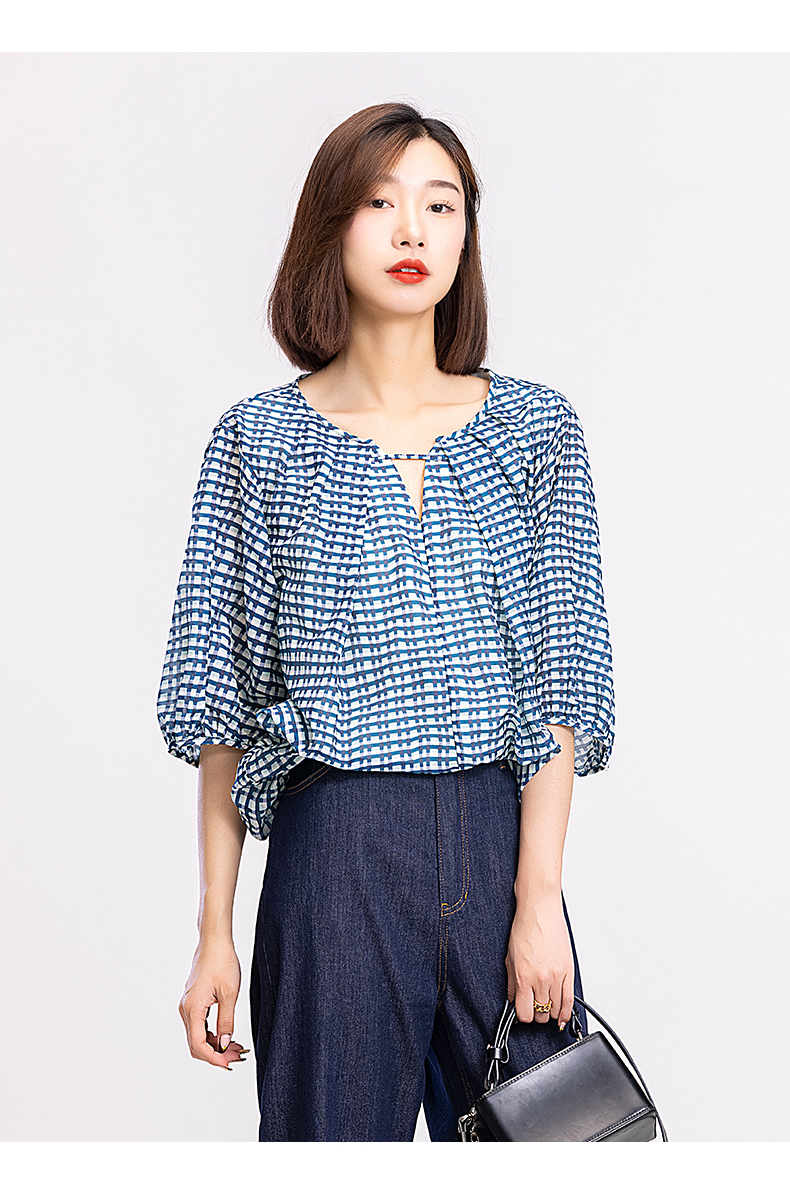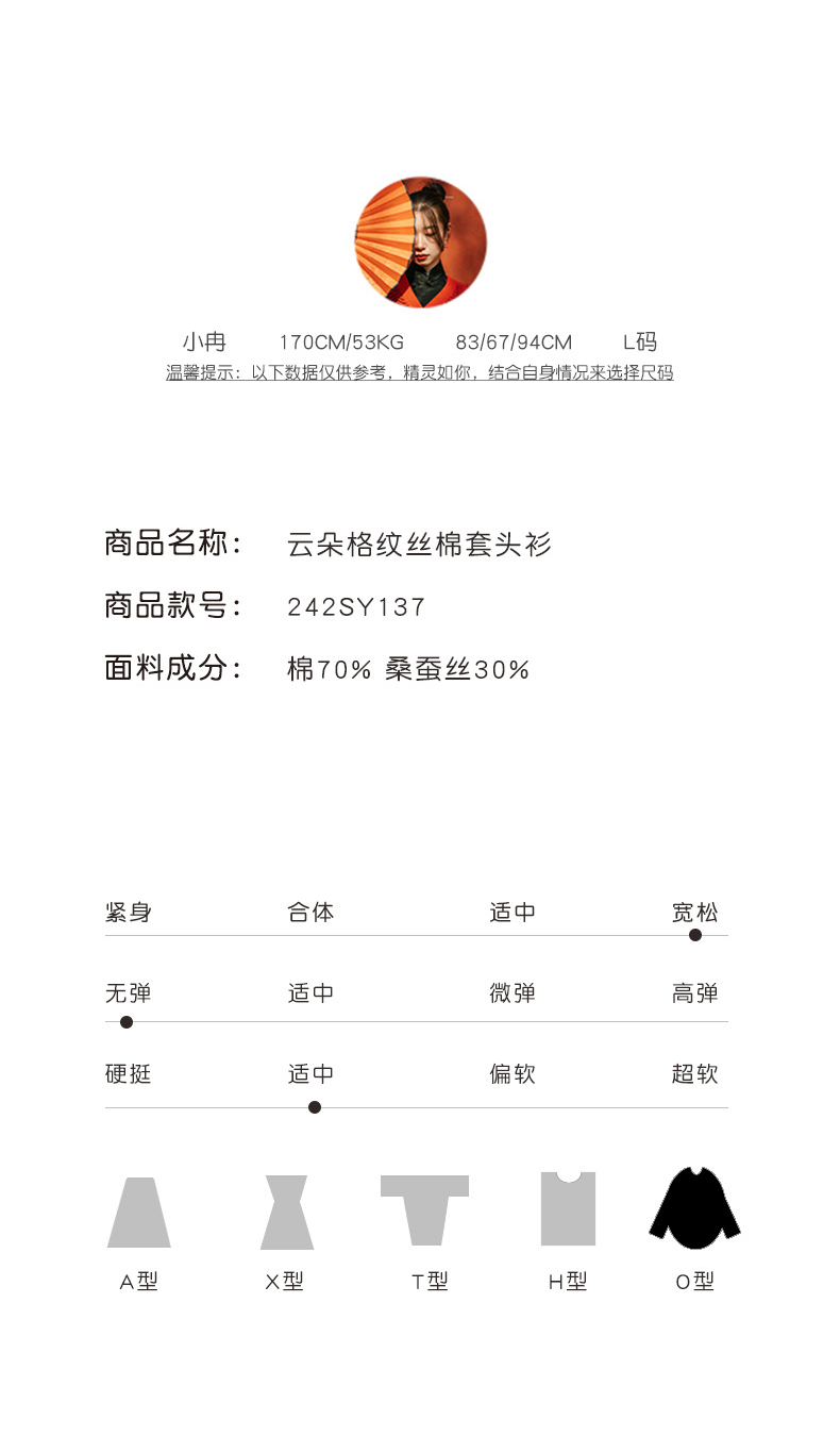 XIAOYU|云朵格纹丝棉套头衫242SY137