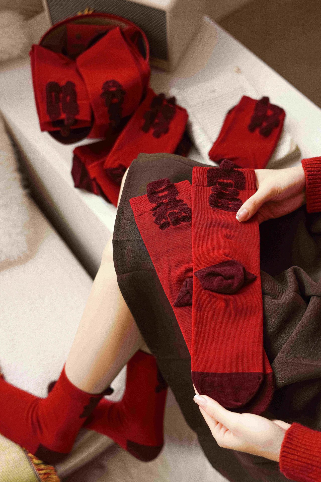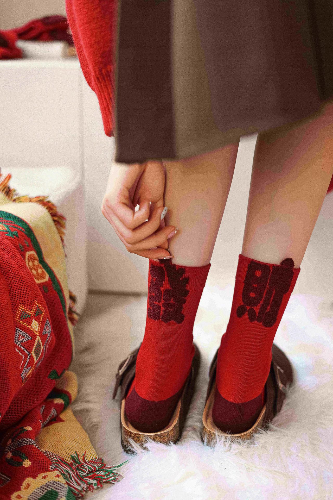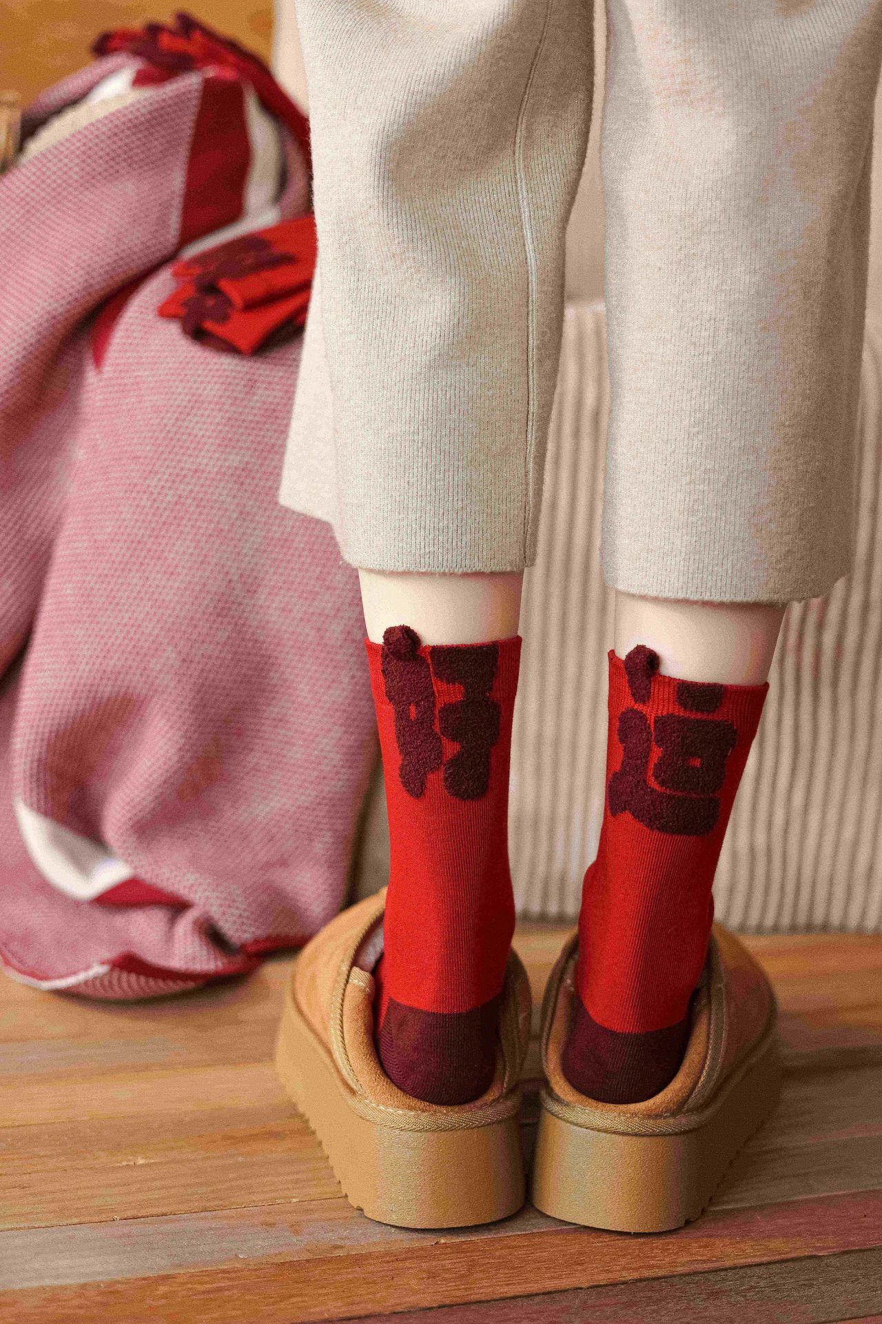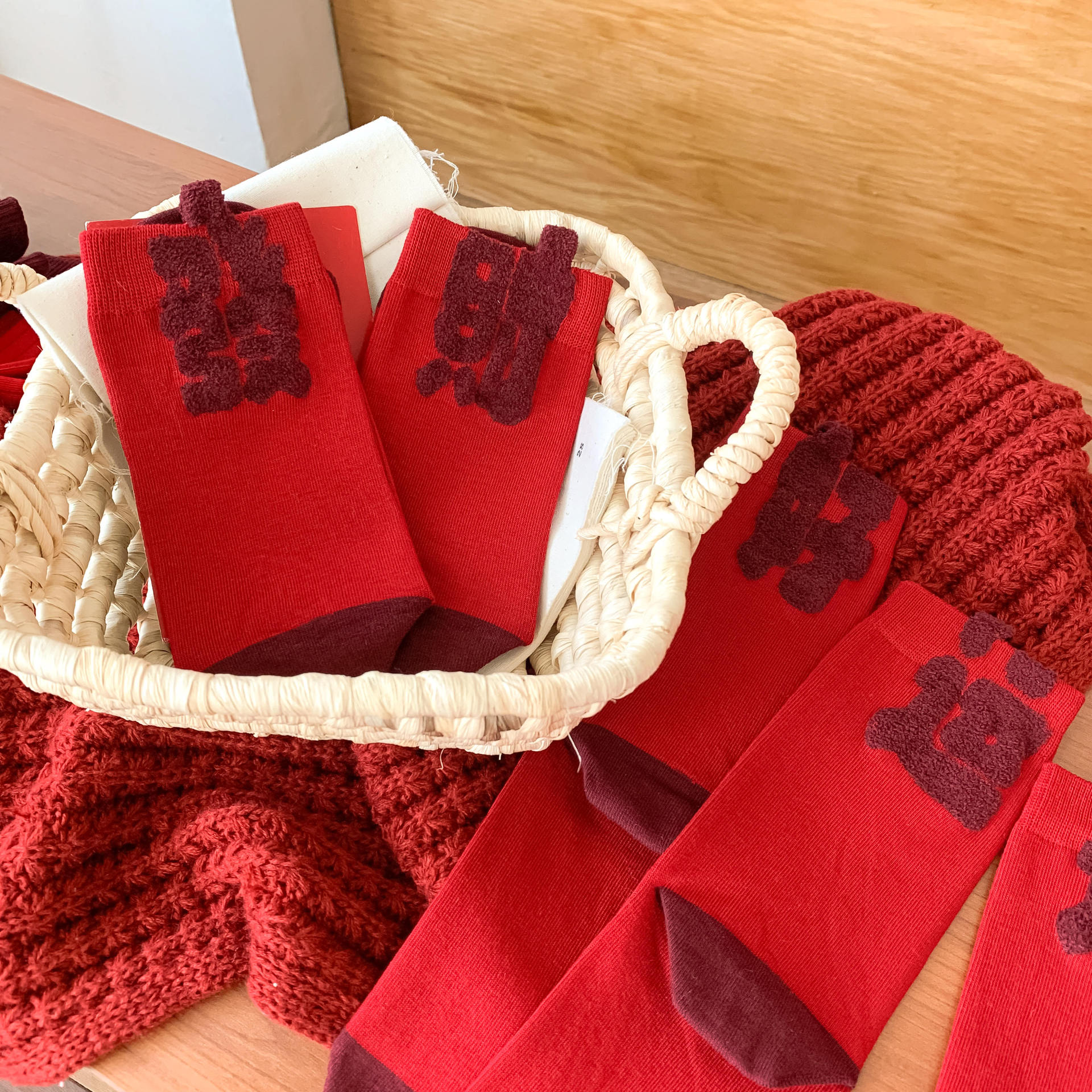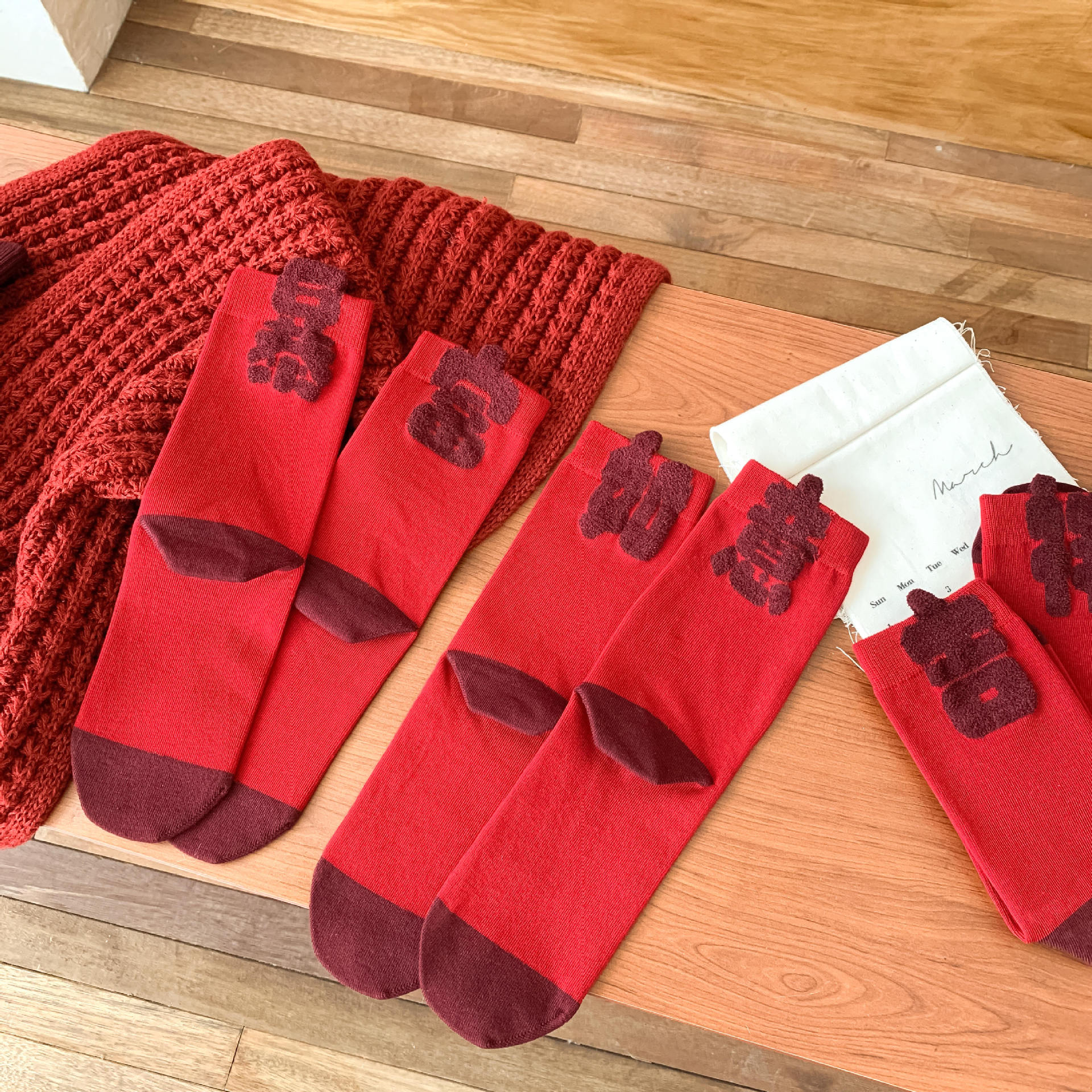 新年装备❗️【福利3对装】本命年大红袜子 女喜庆红色男女中筒袜 舒适蕟财文创立体棉袜 新年袜