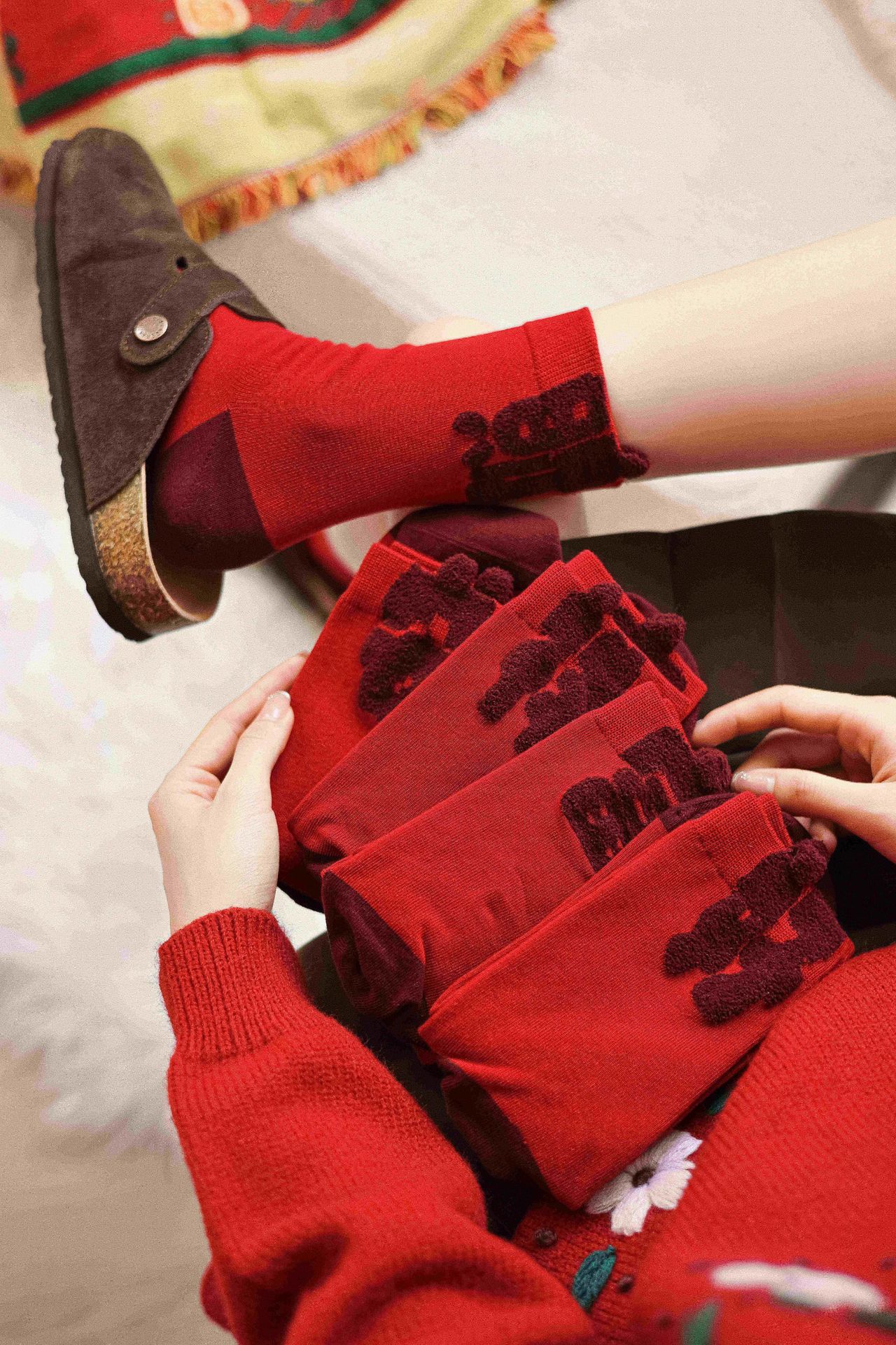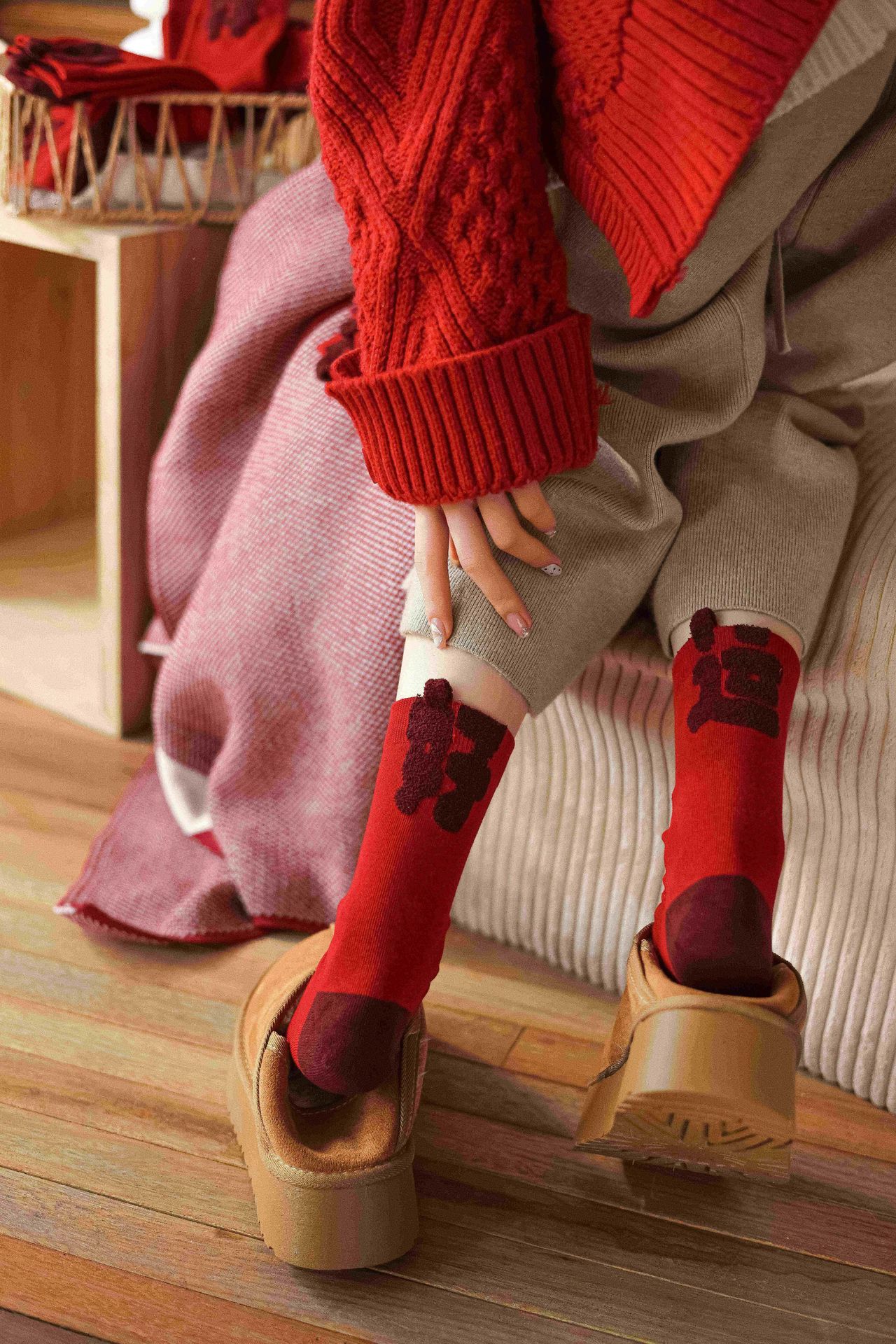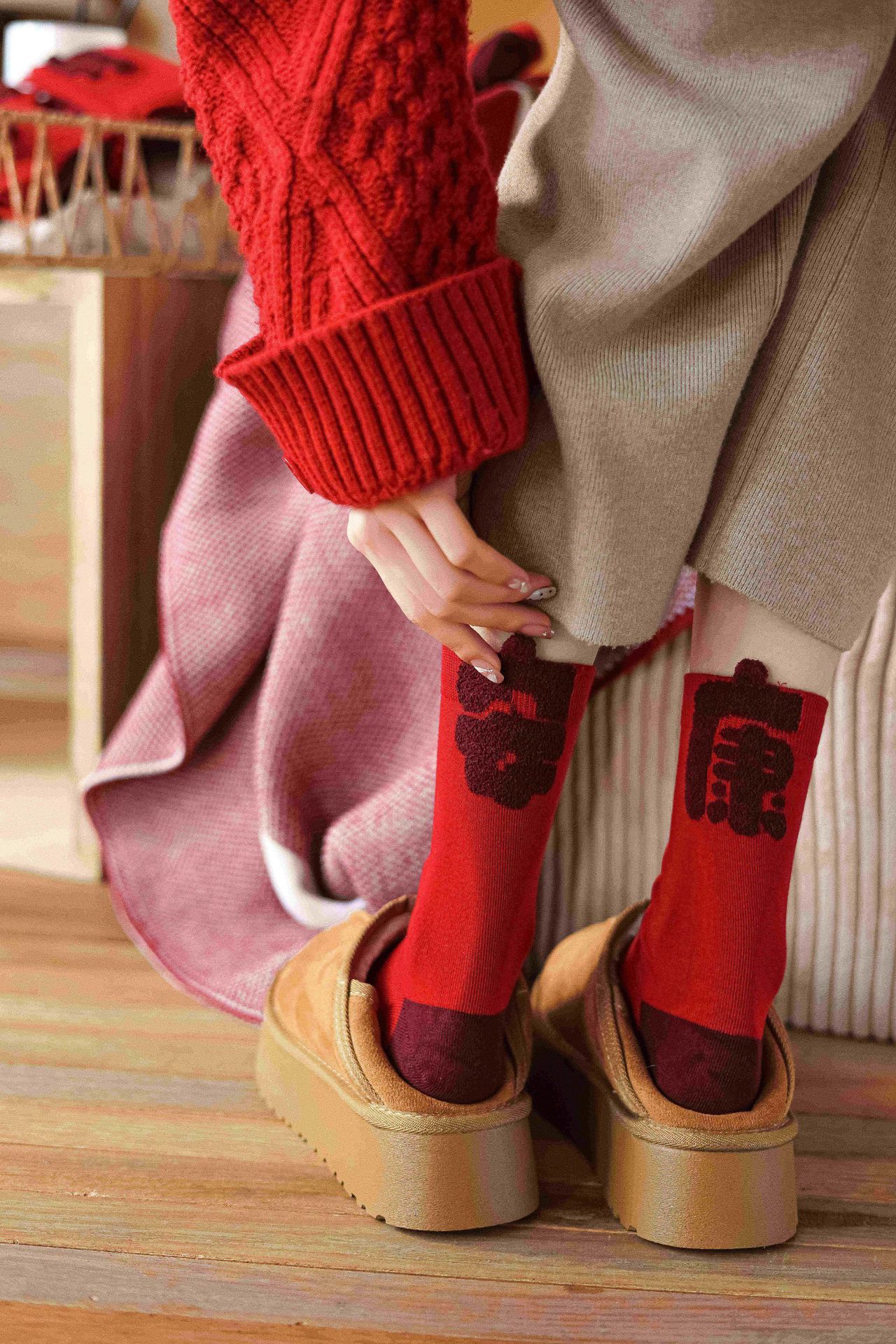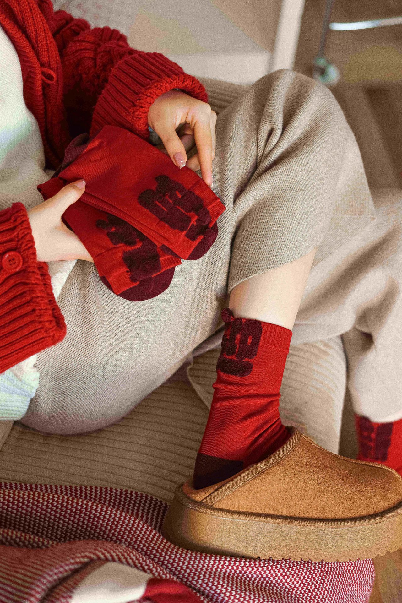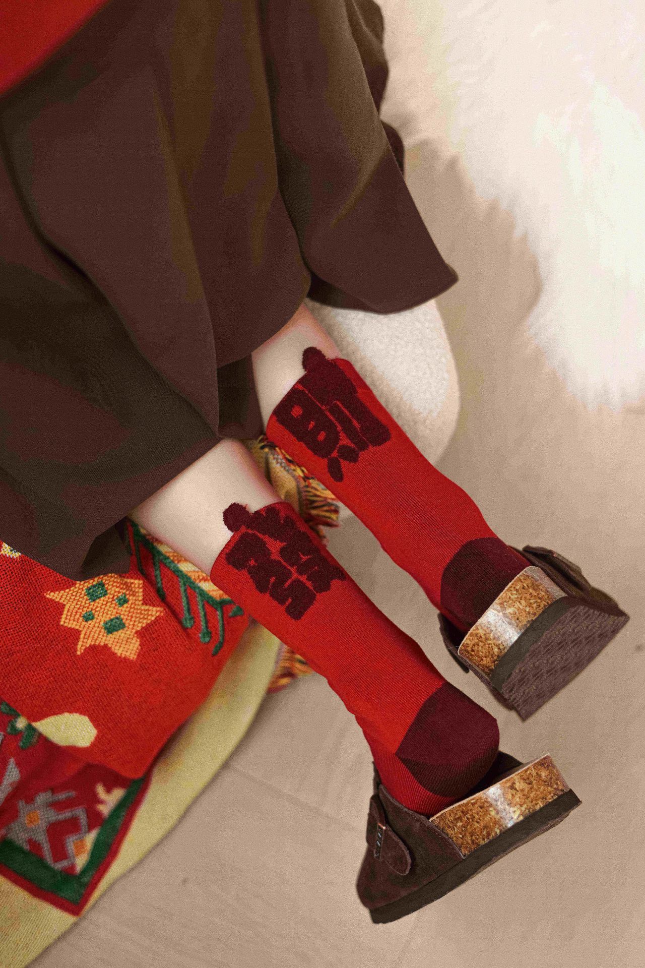 新年装备❗️【福利3对装】本命年大红袜子 女喜庆红色男女中筒袜 舒适蕟财文创立体棉袜 新年袜