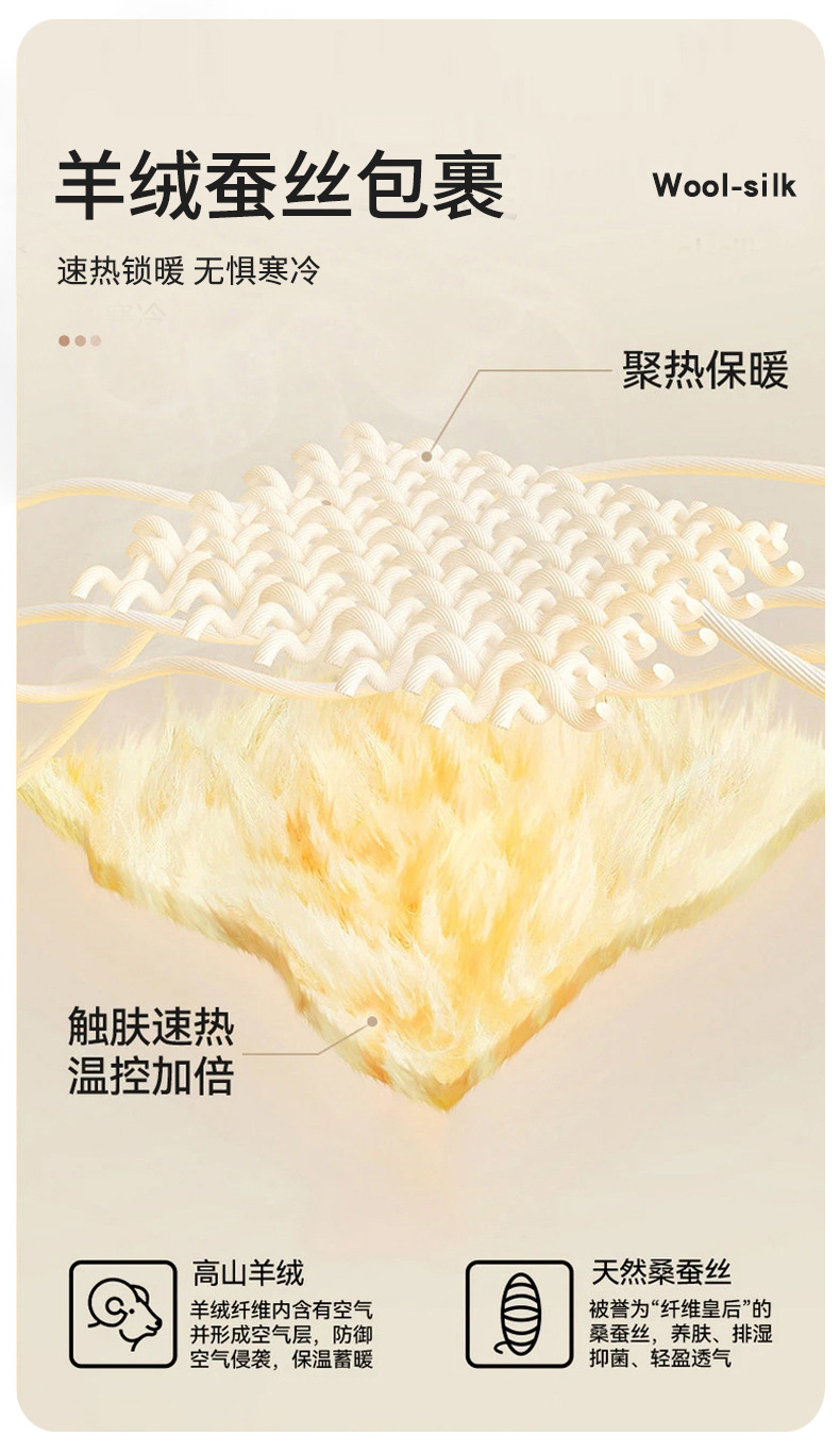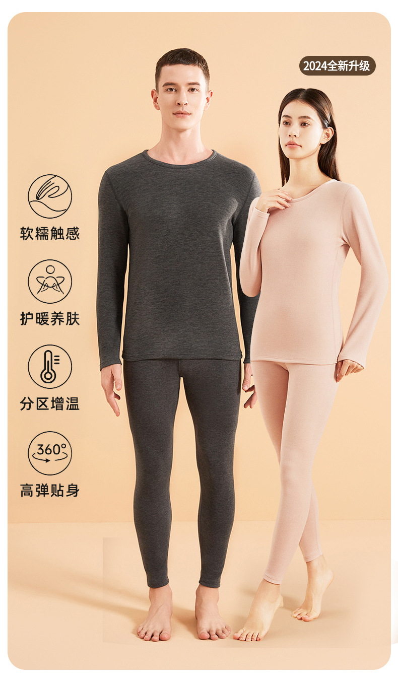 2024新款包边羊绒蚕丝保暖内衣女加绒男士秋衣秋裤套装打底衫批发
