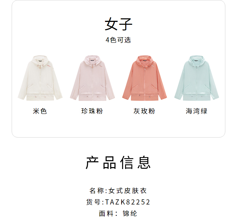 探路者防晒衣女22春夏新款户外防紫外线轻薄透气皮肤衣TAZK82252