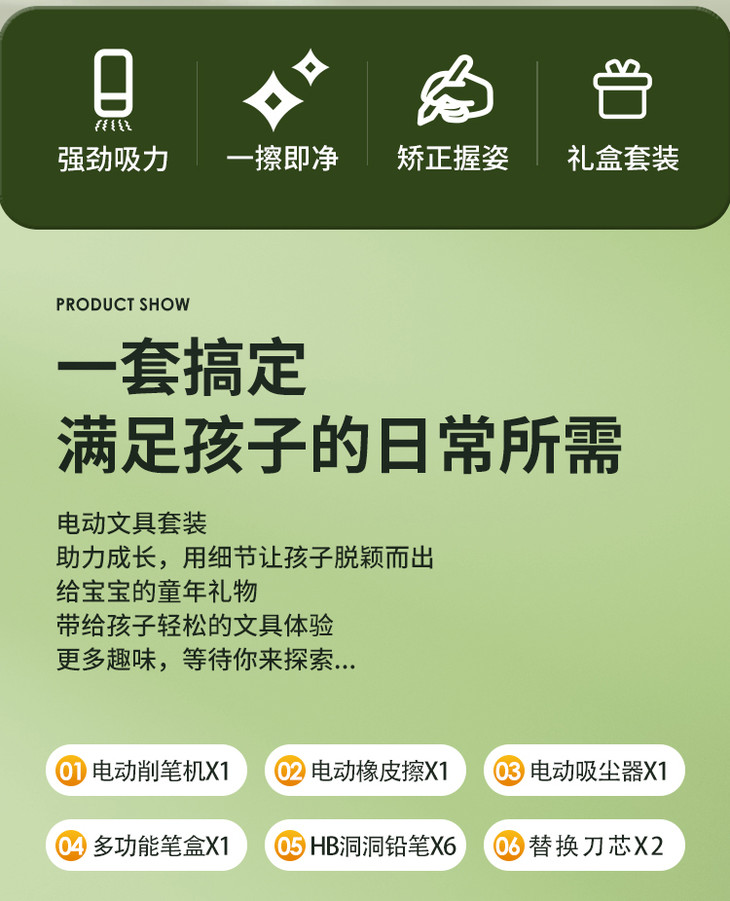 【开学季】纽奇×百乐森联名款 电动文具礼盒电动削笔机桌面吸尘器小学生儿童年货礼盒生日礼物