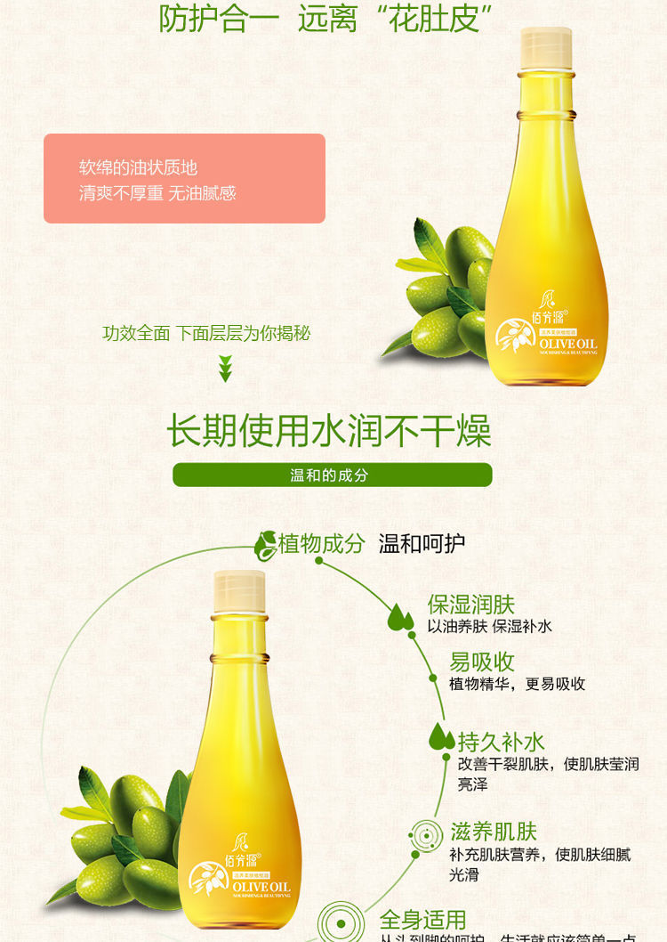 橄榄油孕产妇去皱专用润肤精油身体按摩精油女护肤美白全身防干裂