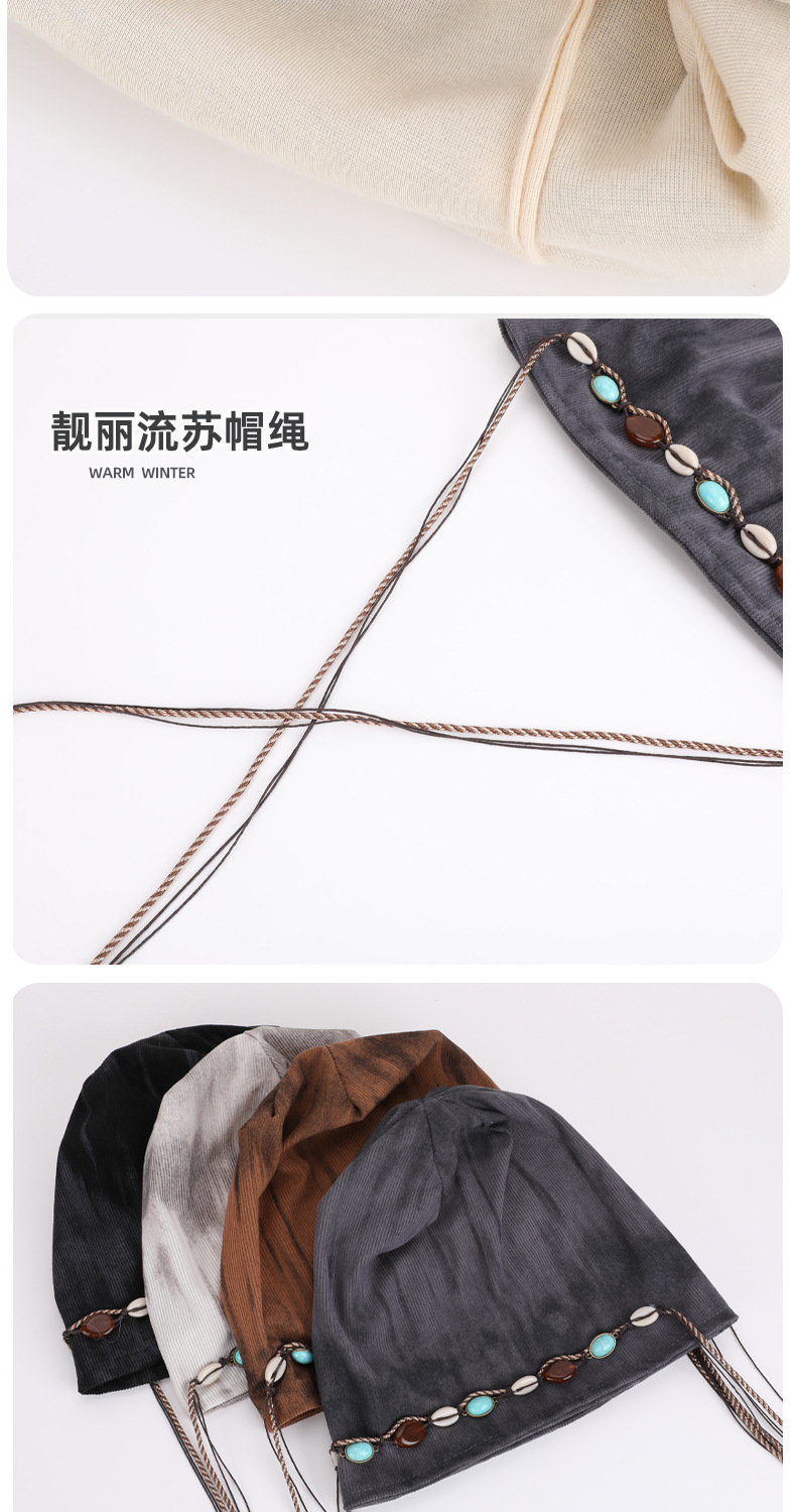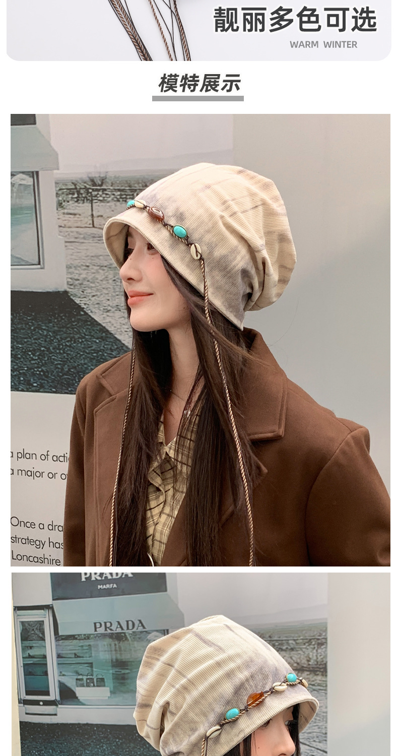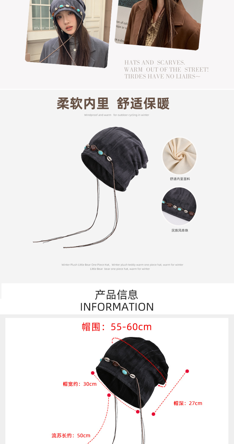 「秋冬新款!波西米亚风」韩版帽子女大头围显脸小冷帽复古堆堆帽护耳保暖包头帽配饰 商品图2