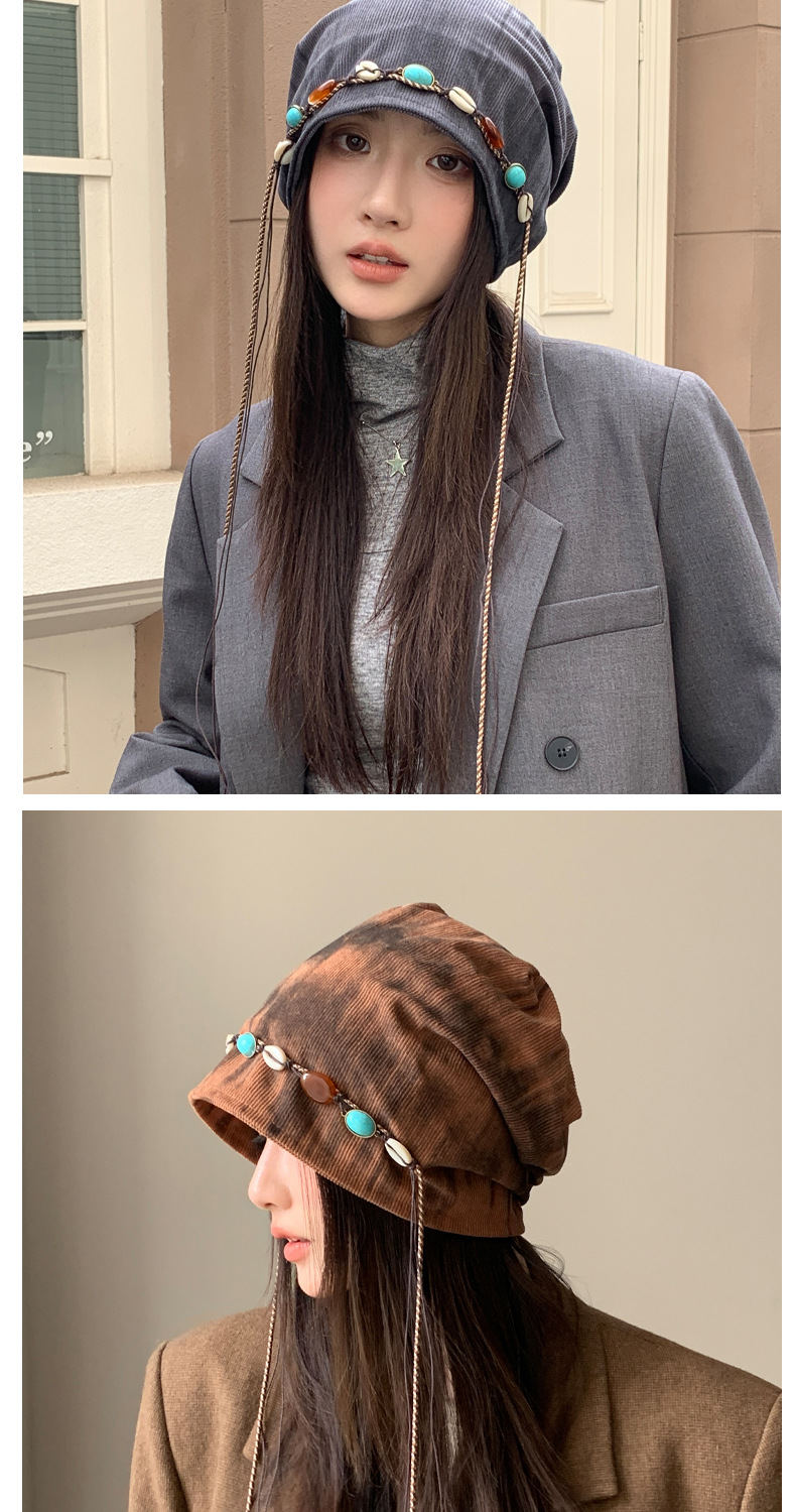 「秋冬新款!波西米亚风」韩版帽子女大头围显脸小冷帽复古堆堆帽护耳保暖包头帽配饰 商品图4