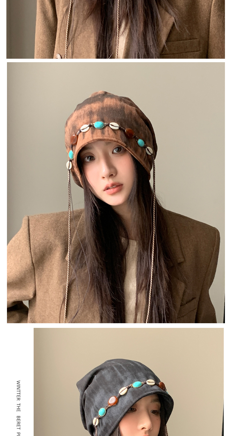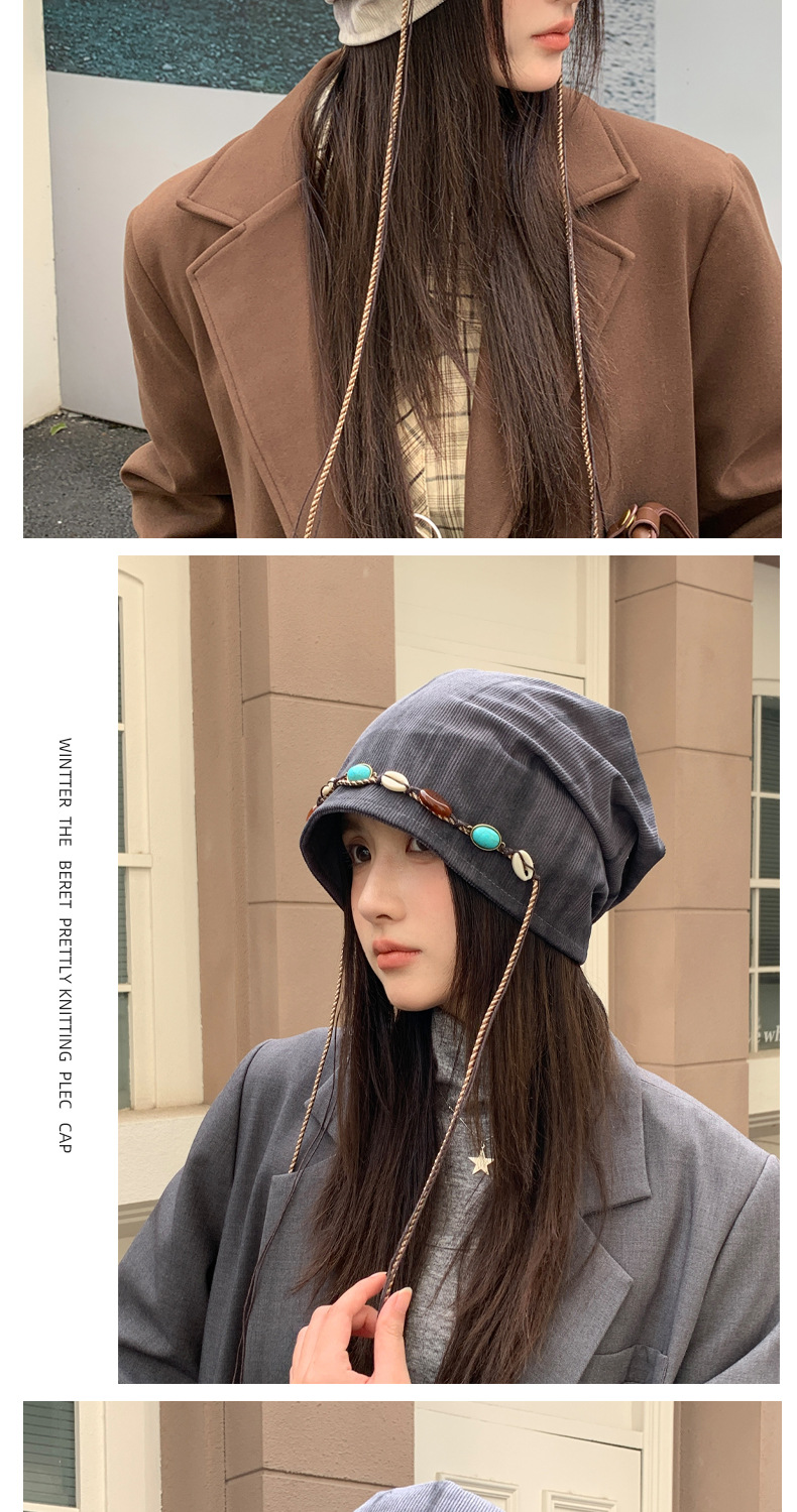「秋冬新款!波西米亚风」韩版帽子女大头围显脸小冷帽复古堆堆帽护耳保暖包头帽配饰 商品图3