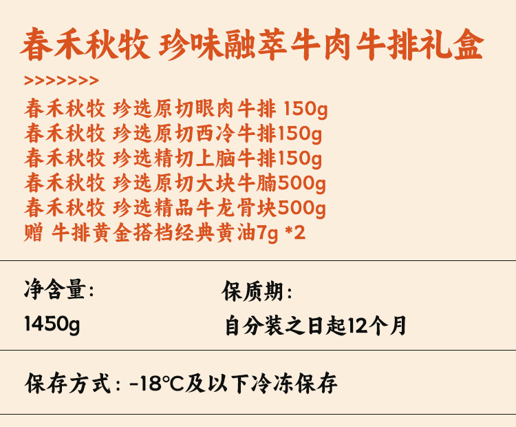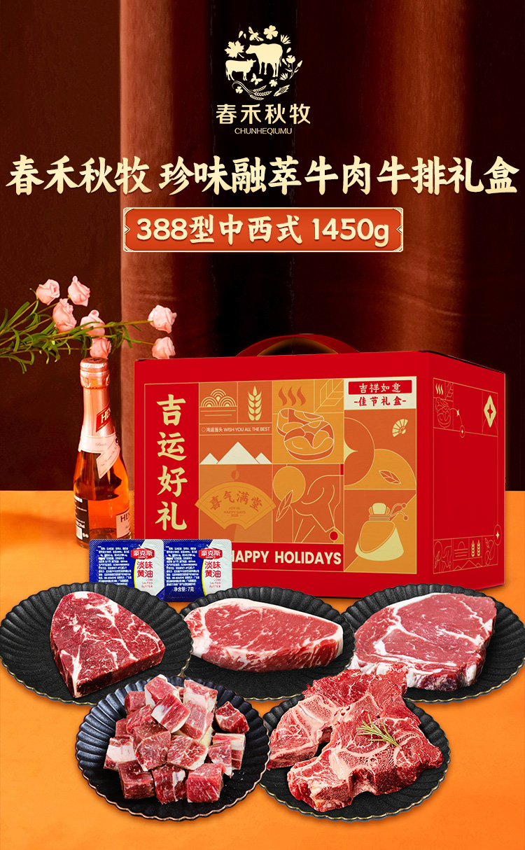 春禾秋牧珍味融萃牛肉牛排礼盒礼盒1450g(388型中西式)顺丰冷运到家