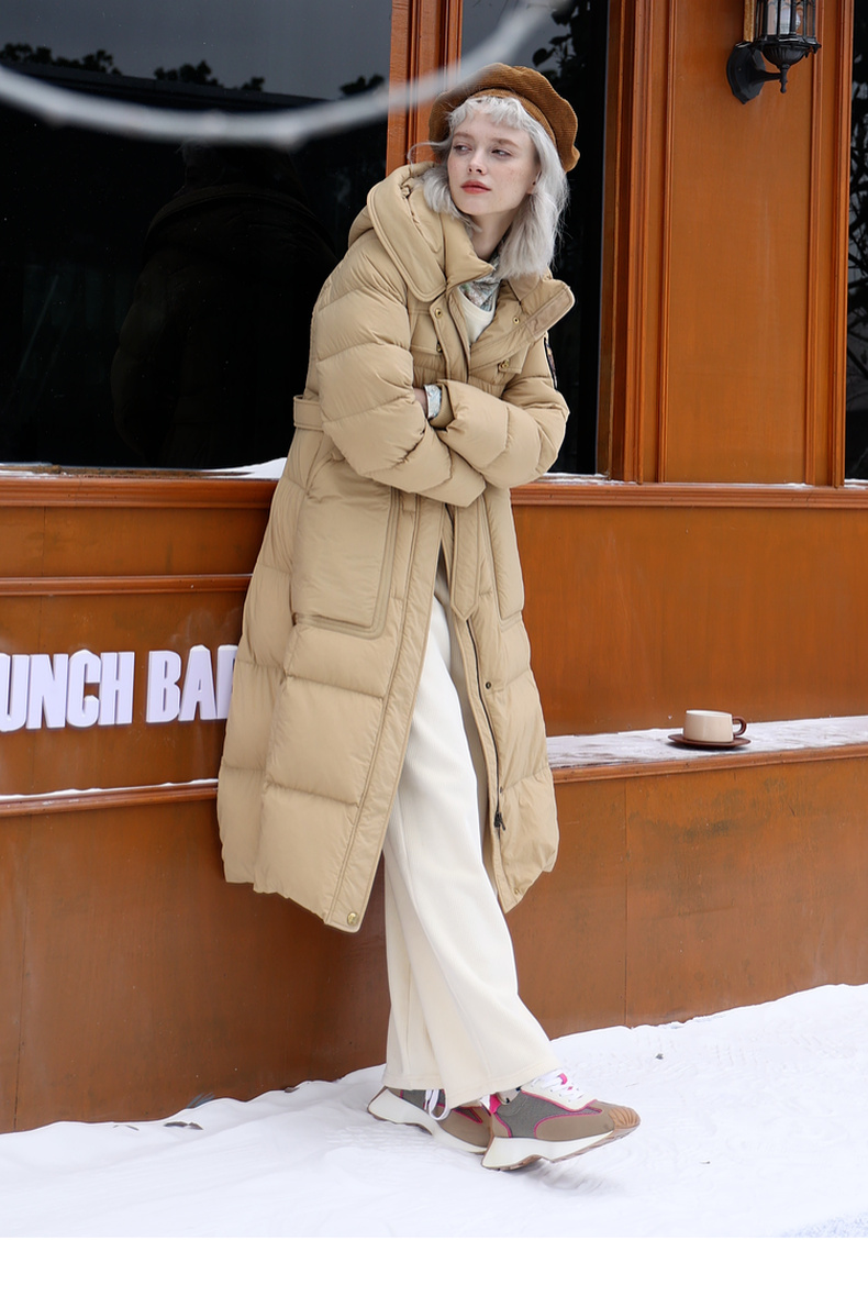 谜底超长款羽绒服女2023冬季新品时尚修身加厚保暖鸭绒234MY1482