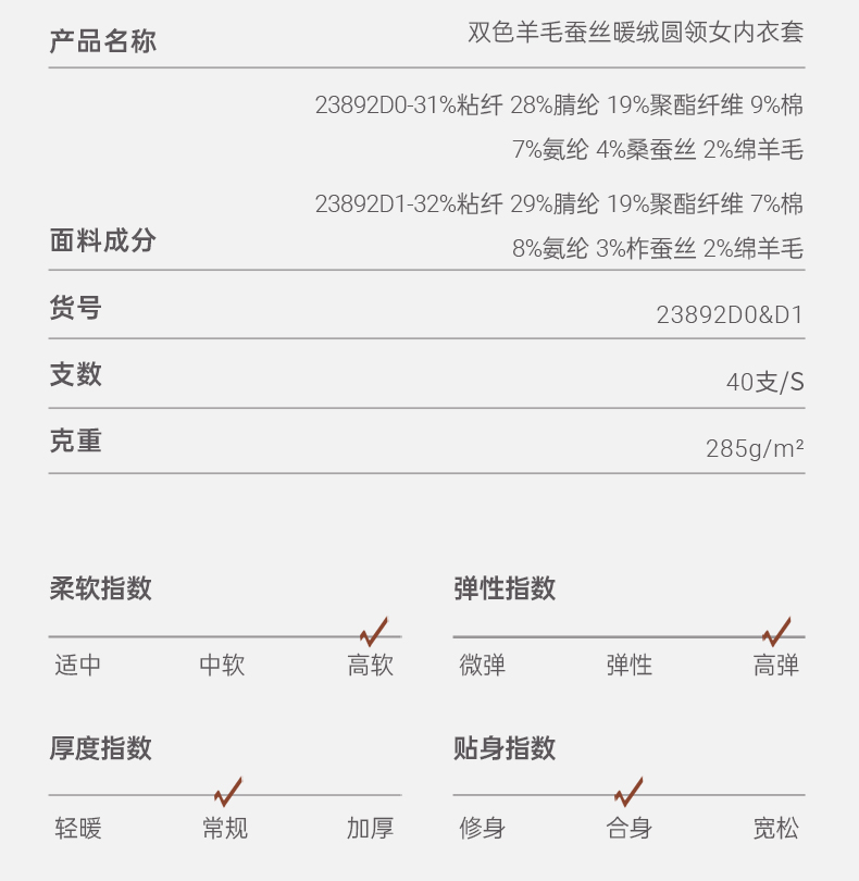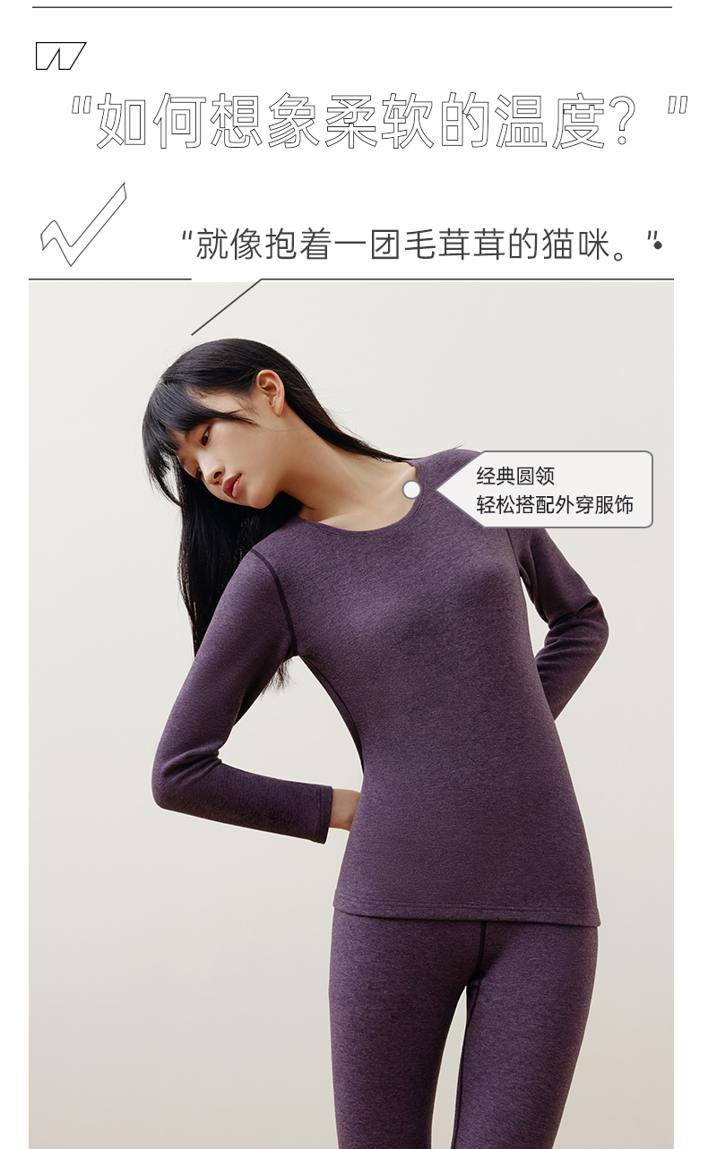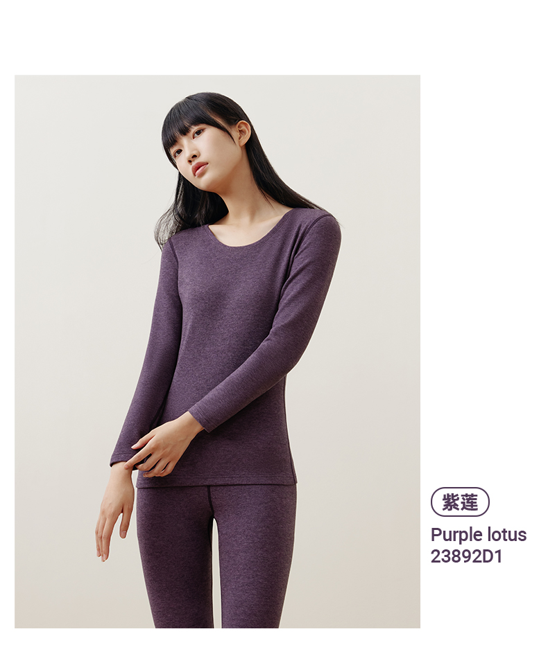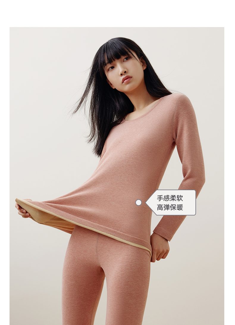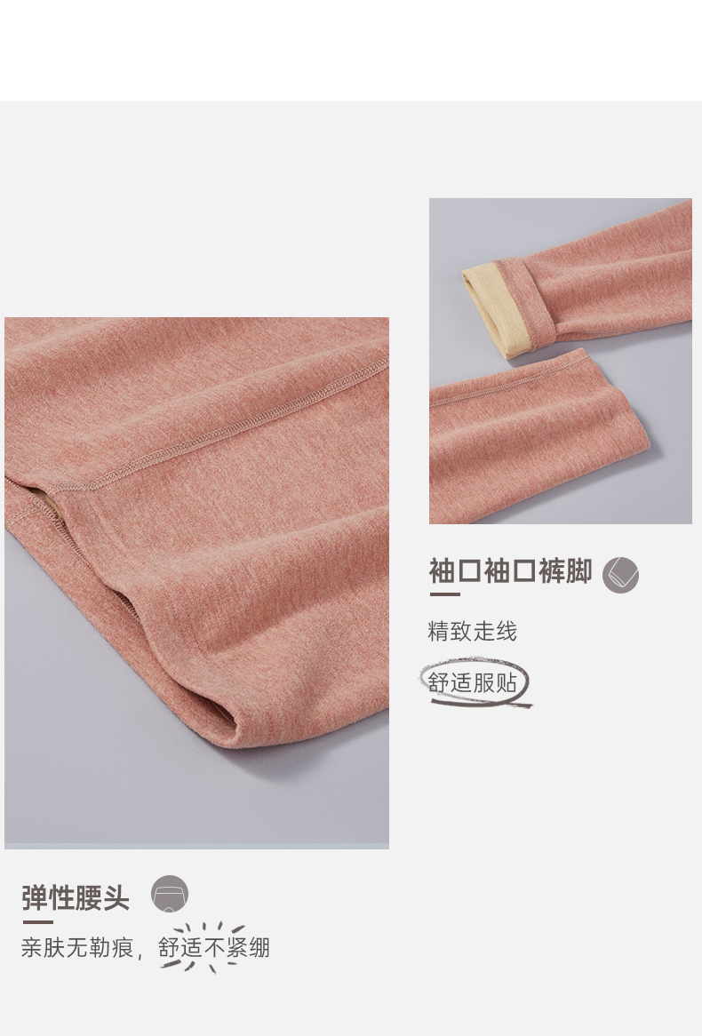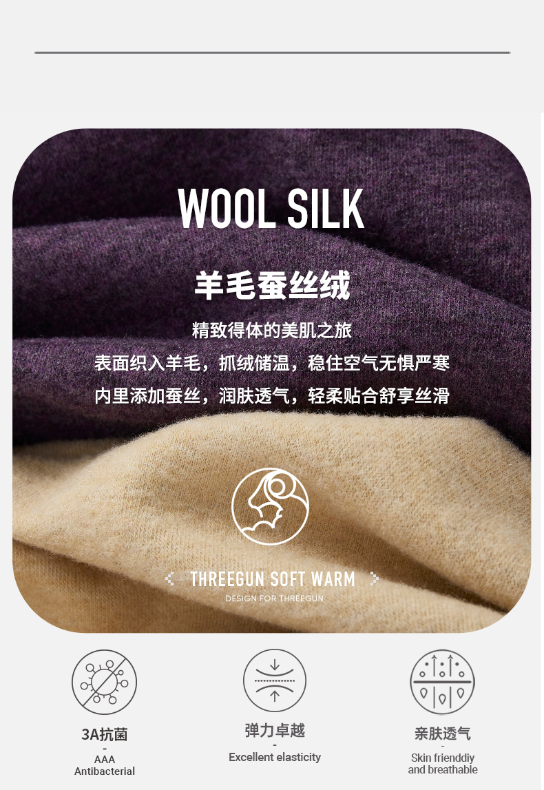 Threegun三枪 【双色羊毛蚕丝】暖绒圆领女士保暖内衣套装-23892D021