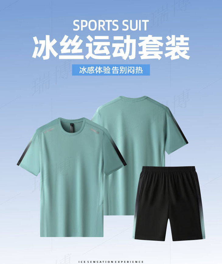 【健身衣跑步服男冰丝运动服套装】夏季短袖T恤晨跑透气冰感速干短裤