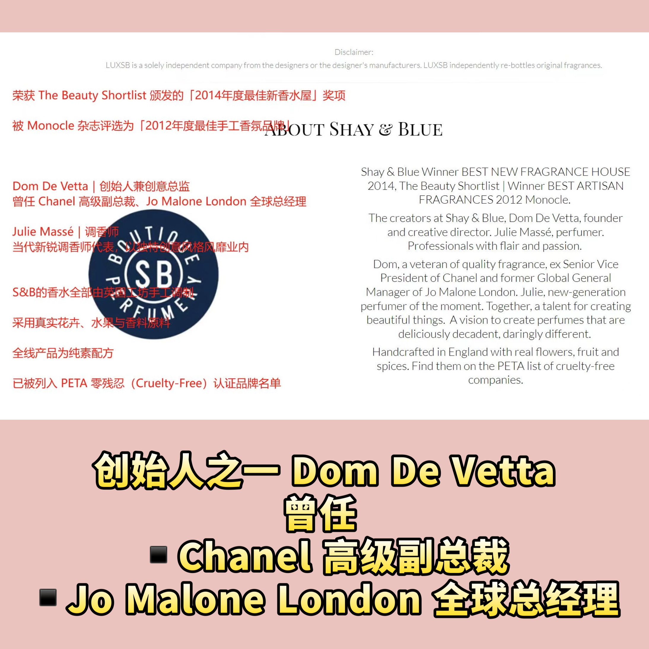 “SHAY&BLUE的每一款香水都含天然成分。”