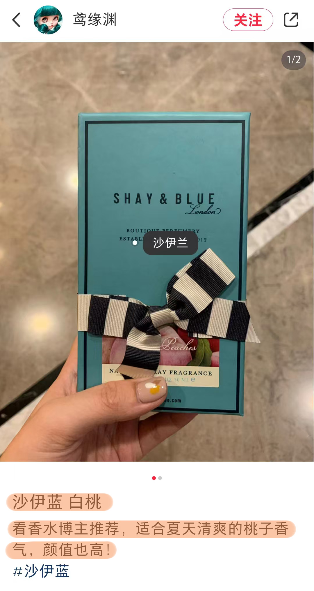 SHAY&BLUE 致力于创制清洁香水,使⽤天然原料创制香水(如花,水果,香料),不添加任何有害环境与人体健康的物质,采用传统香水制作工艺纯手工打造⾹水。