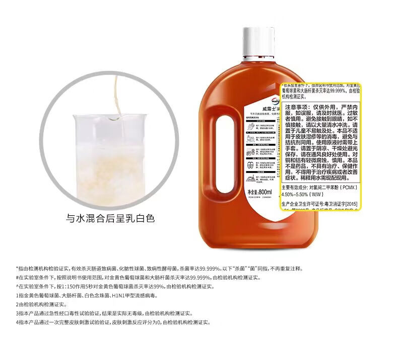 威露士消毒液800ml+威露士健康抑菌洗手液丝蛋白250ml