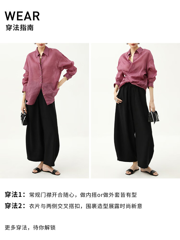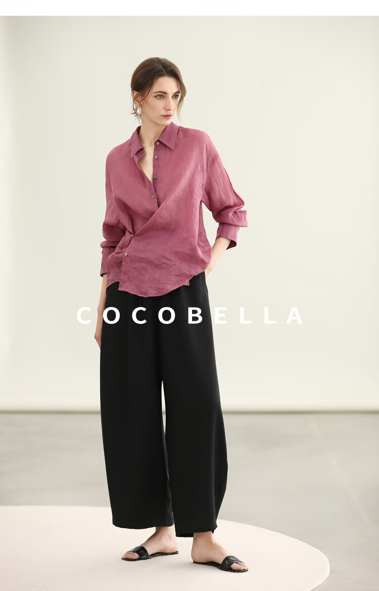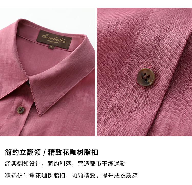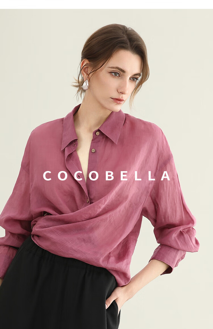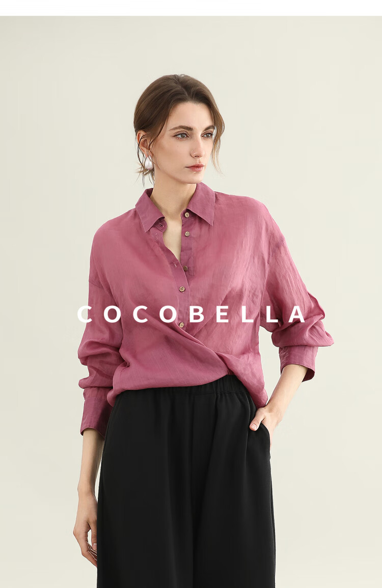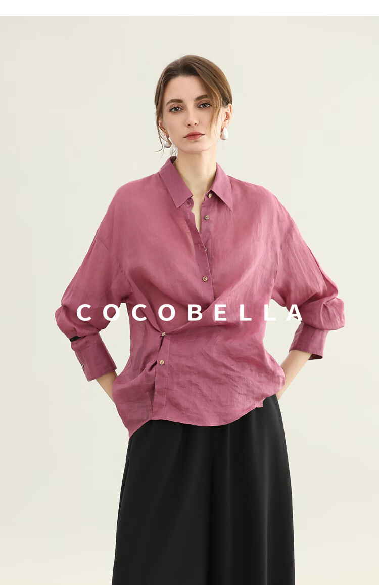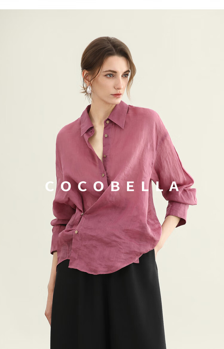【秒杀】COCOBELLA[100%苎麻]树莓红古法染色衬衫女轻薄衬衣SR0058-2
