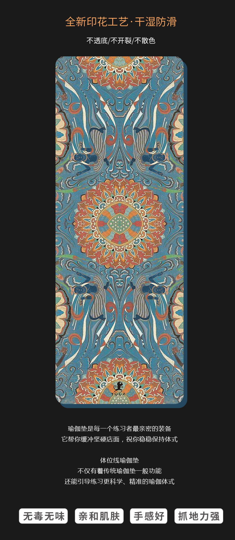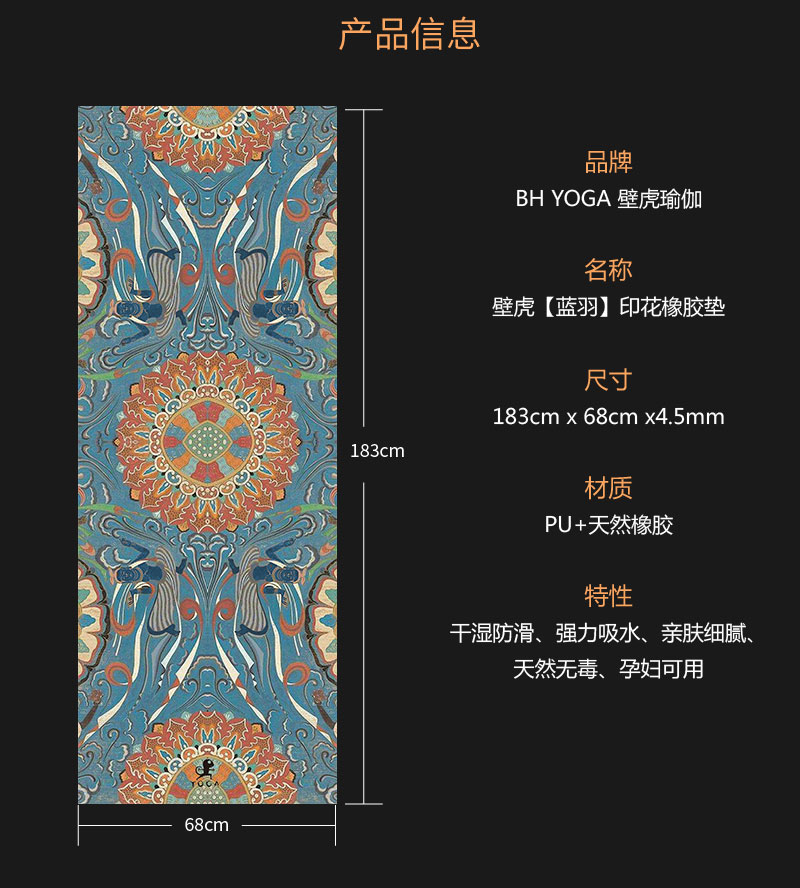 壁虎新款【蓝羽】天然橡胶印花瑜伽垫 【5天发货】