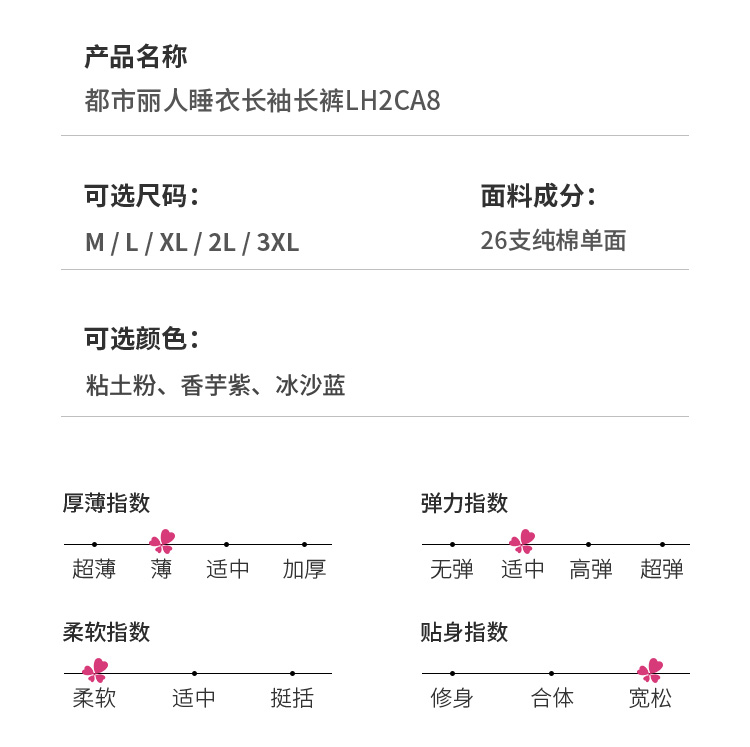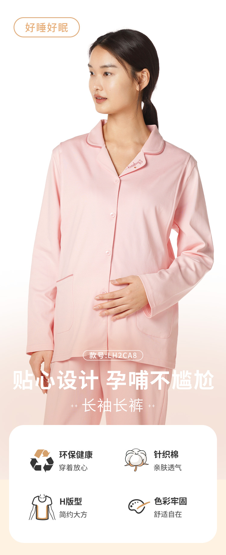 都市丽人好睡好眠女士孕妇套装26支棉单面薄家居服长袖睡衣LH2CA8