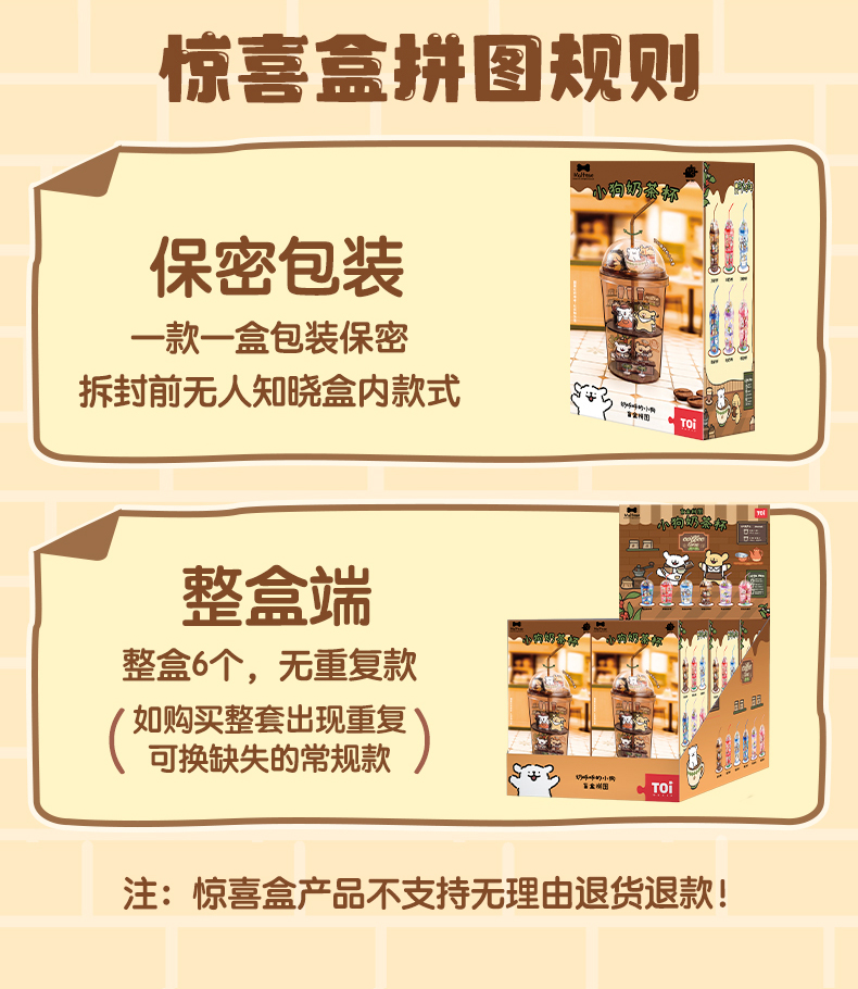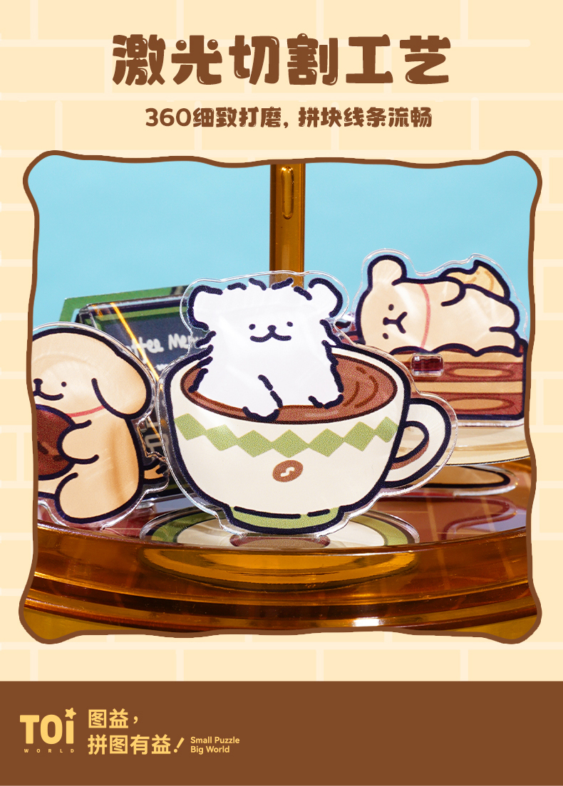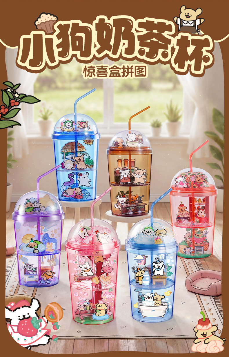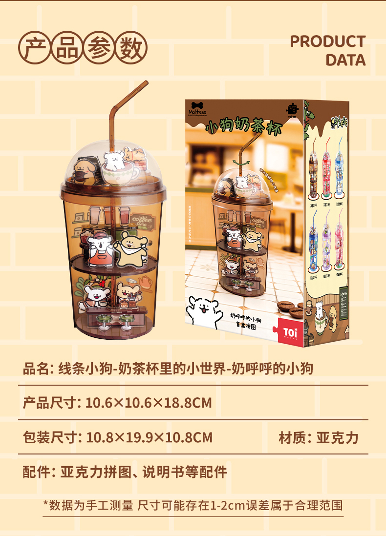 TOi图益-线条小狗-奶茶杯里的小世界-奶呼呼的小狗盲盒拼图(拍6发端盒)