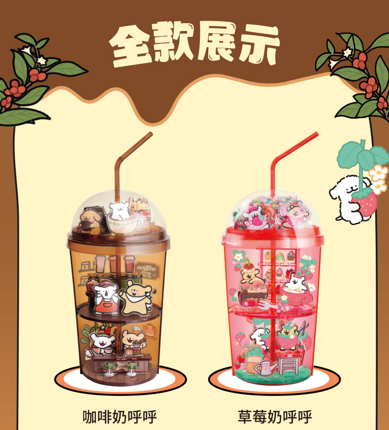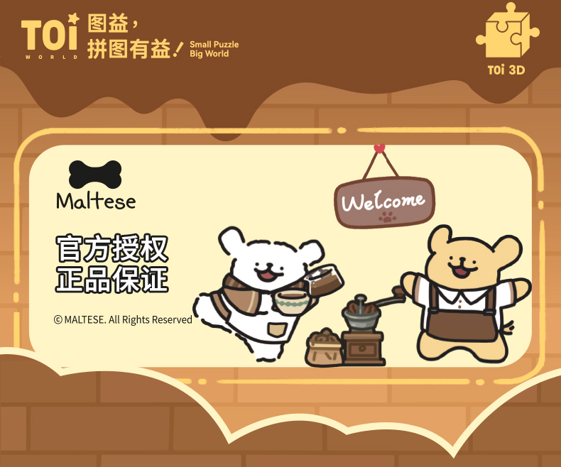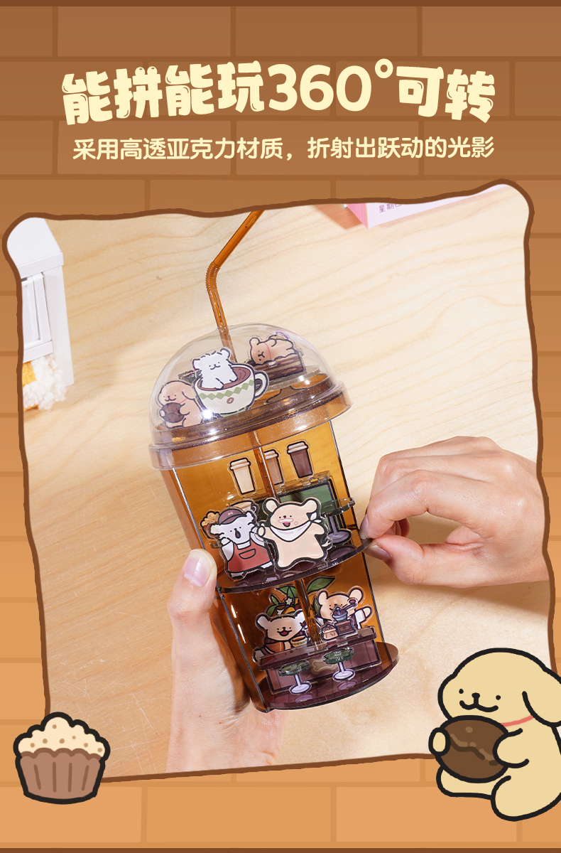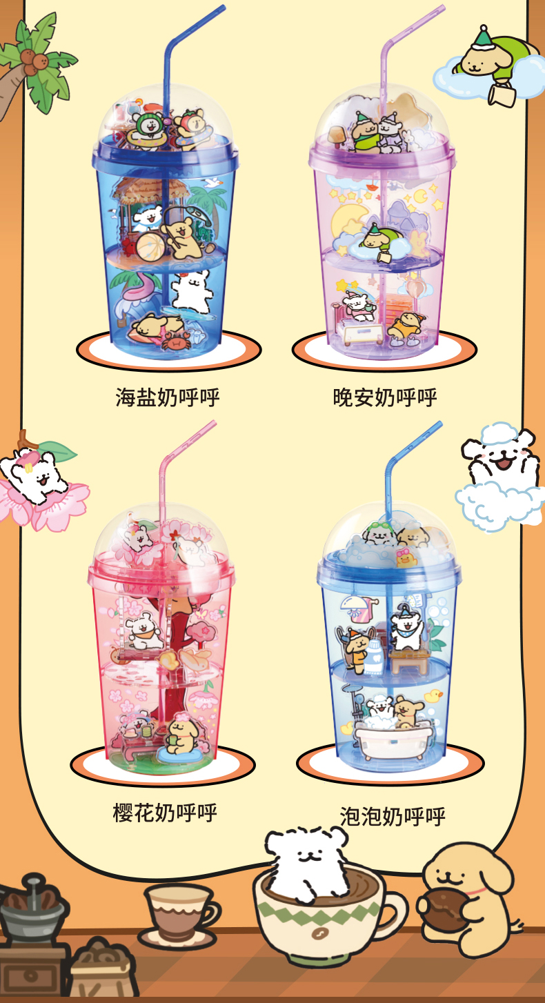 TOi图益-线条小狗-奶茶杯里的小世界-奶呼呼的小狗盲盒拼图(拍6发端盒)