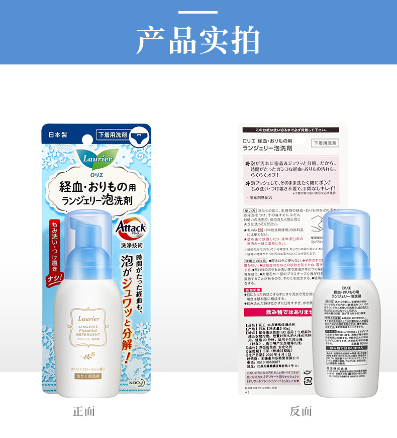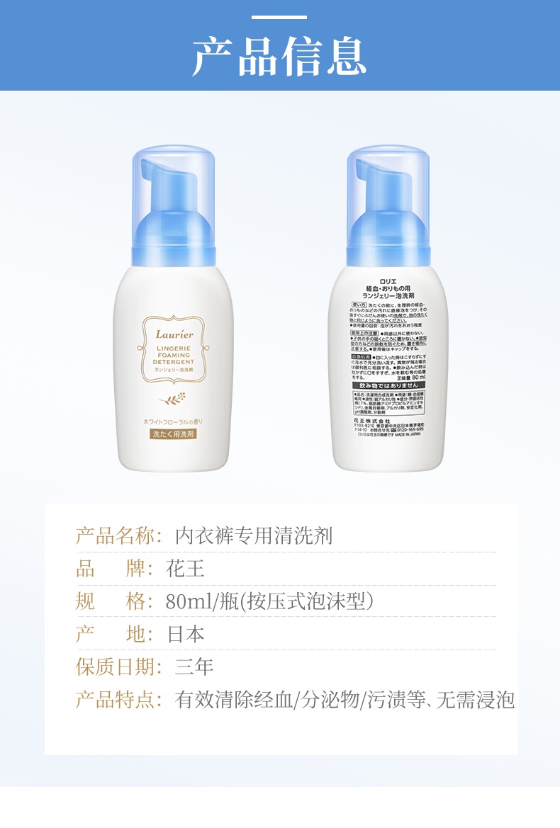 花王(KAO)内衣内裤专用洗衣液清洗剂去血渍易漂洗