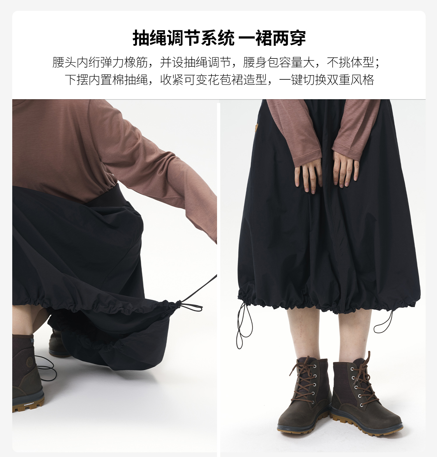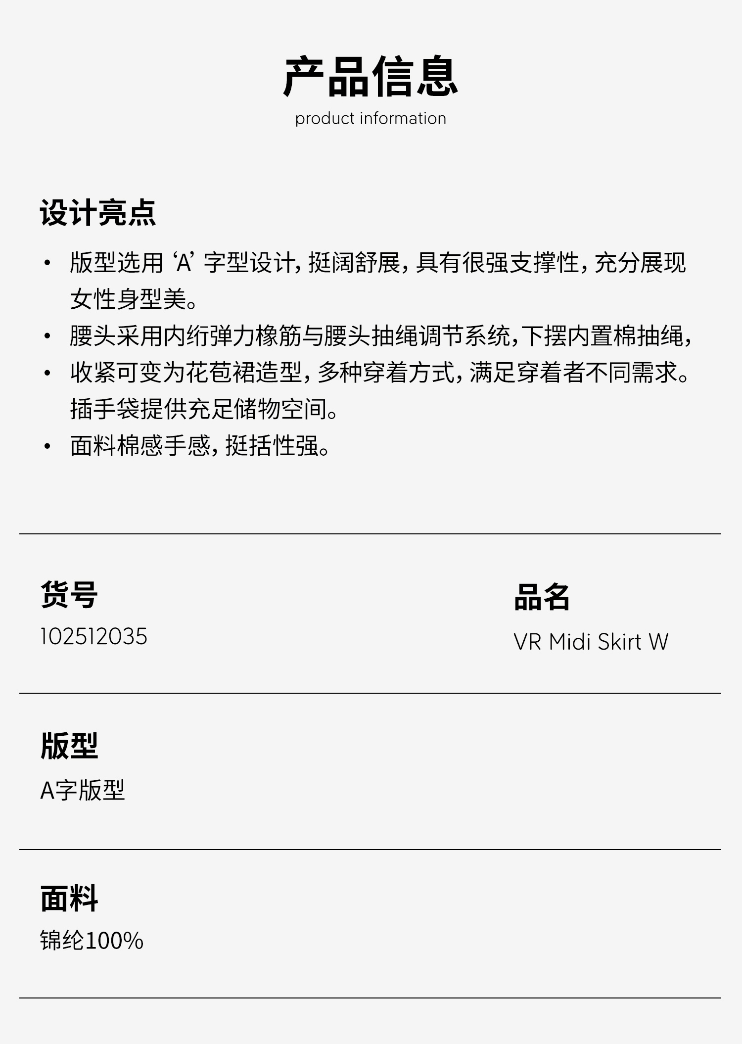 北极狐 女士半身裙长裙 2025春夏城市户外工装裙A字伞裙102512035