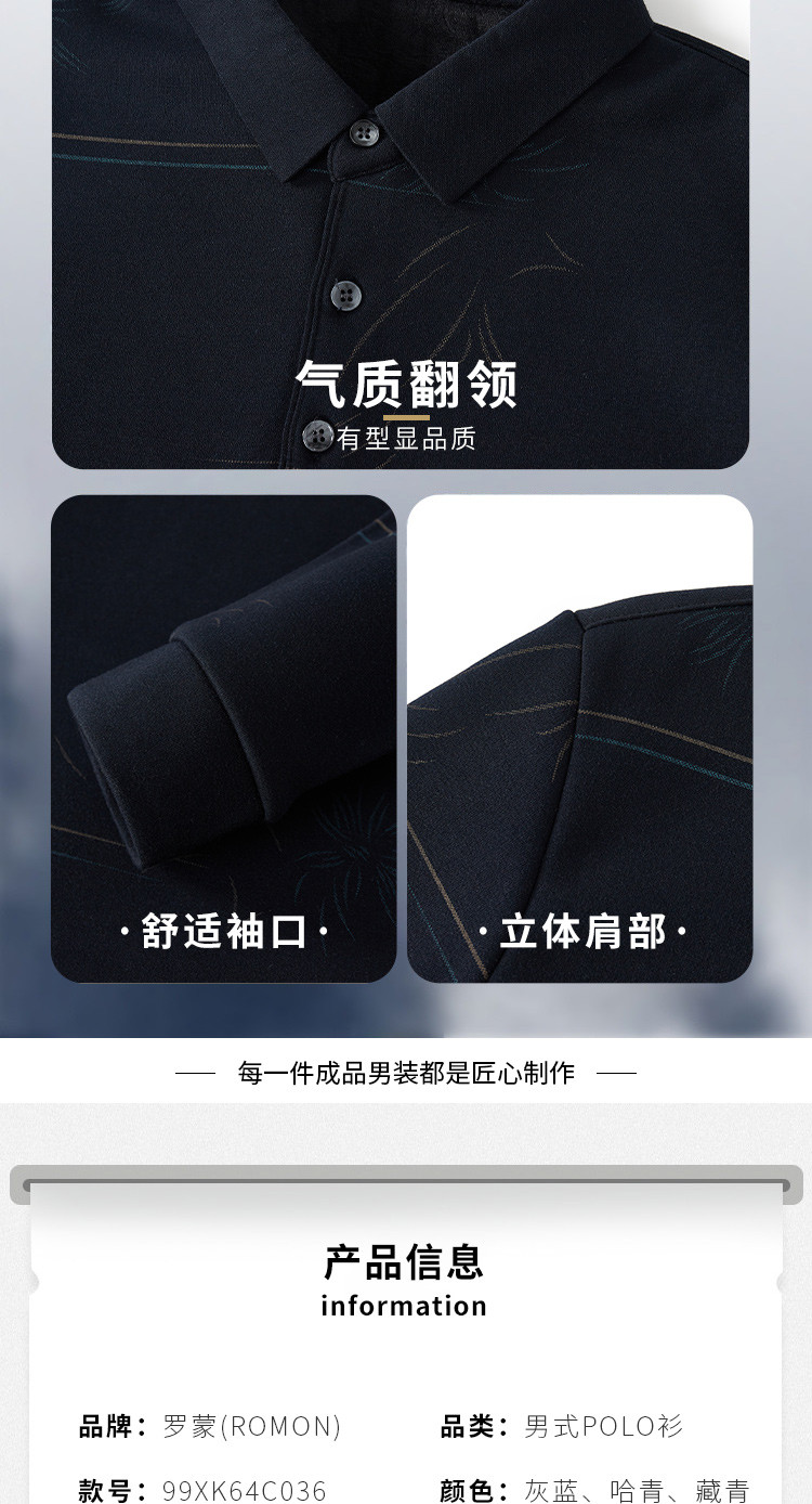 【加绒加厚】罗蒙秋冬衬衫男保暖防风时尚印花通勤百搭休闲套头衬衣男