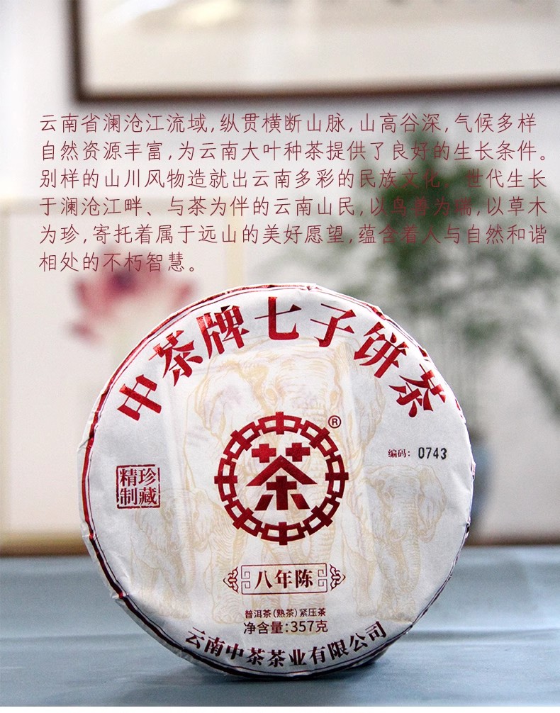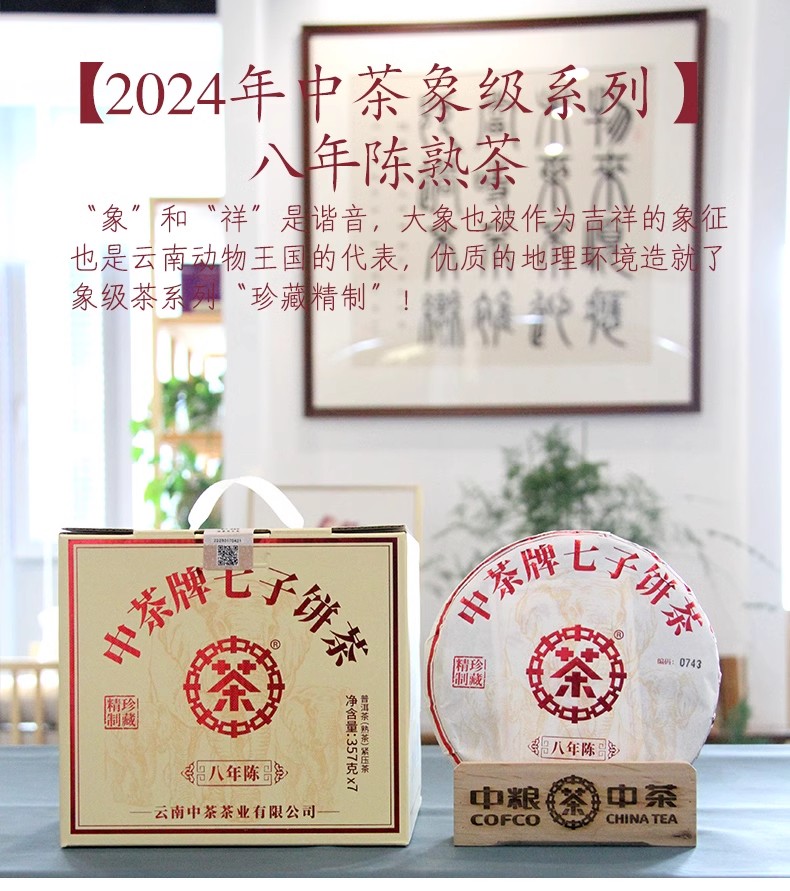 中粮-中茶 2024年中茶八年陈熟茶普洱茶云南普洱茶357克饼茶叶 /云南干仓直发