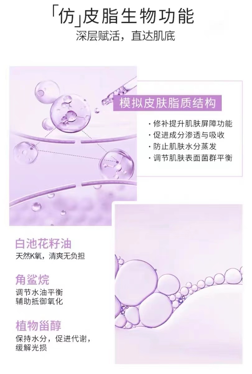 它含有高浓度白花池籽油,仿皮脂生物功能