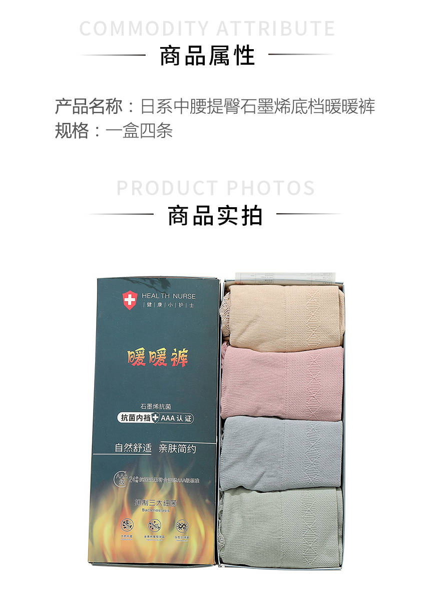 【买一送一】日系中腰提臀石墨烯底档暖暖裤(四色一盒)共8条