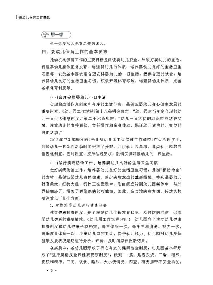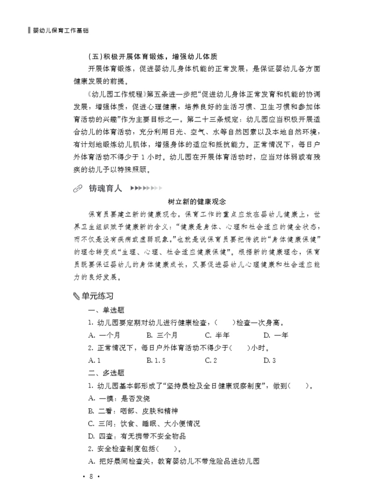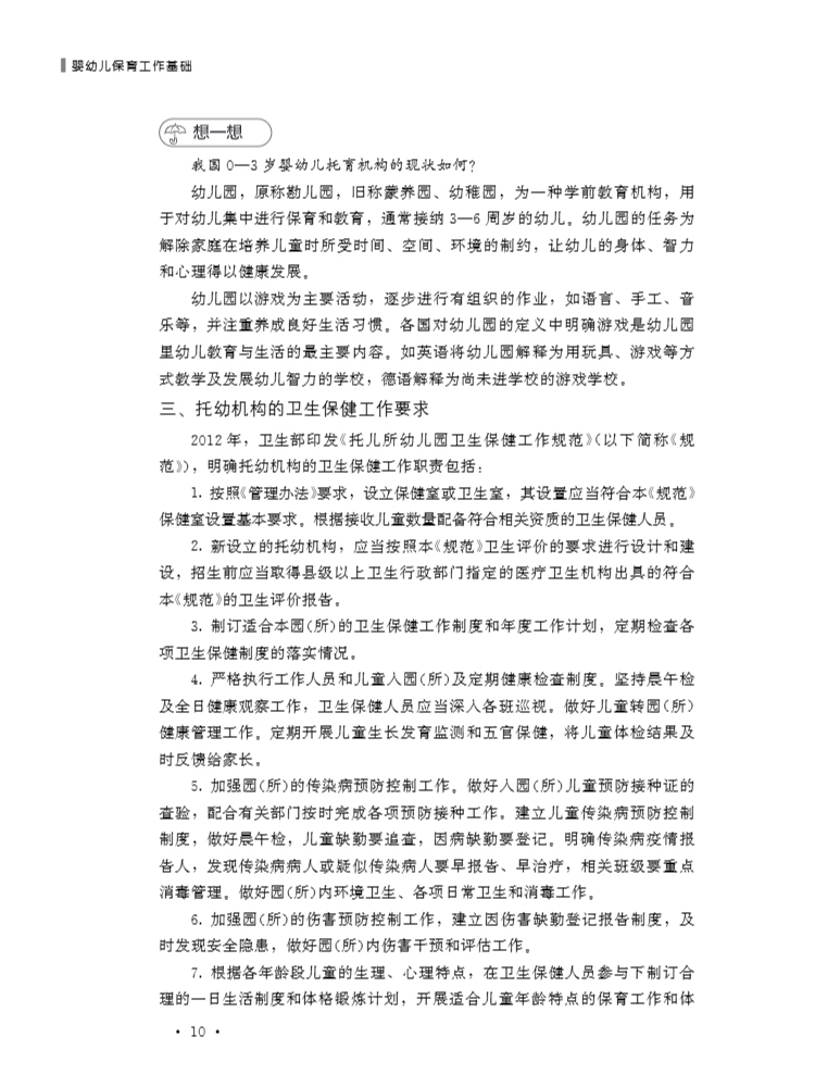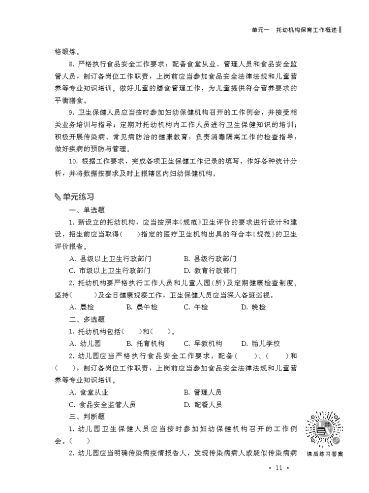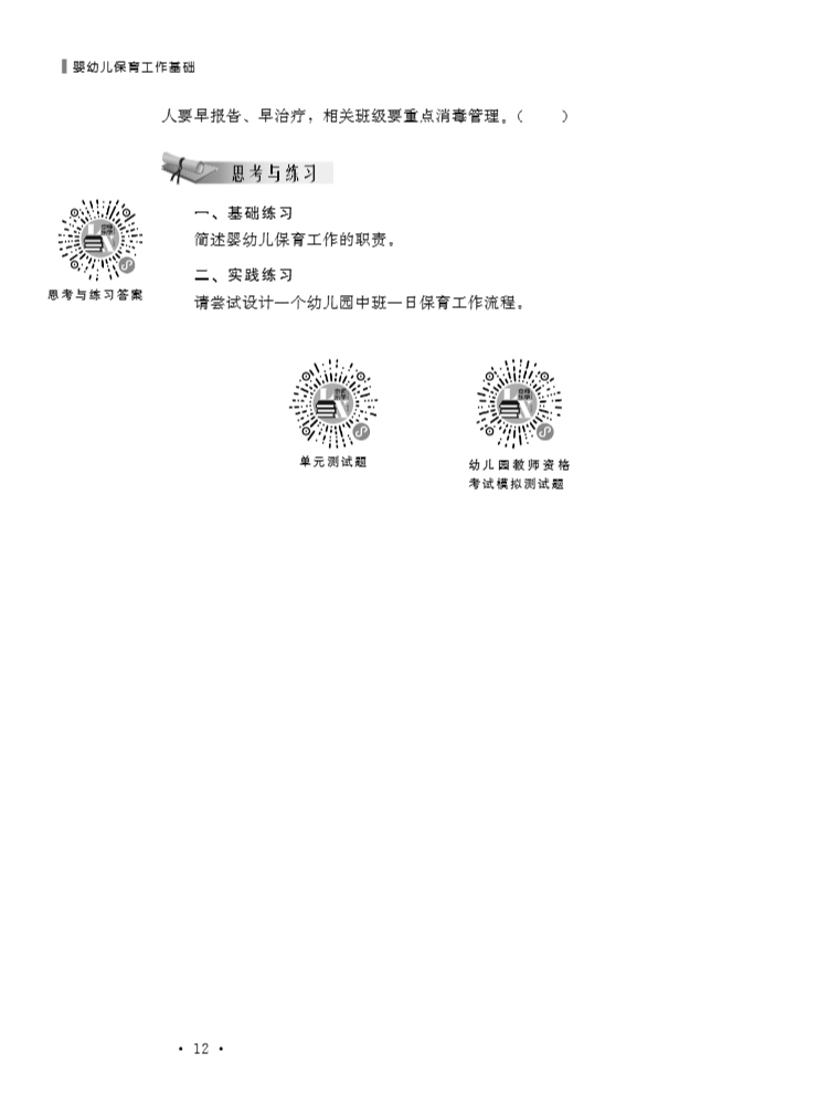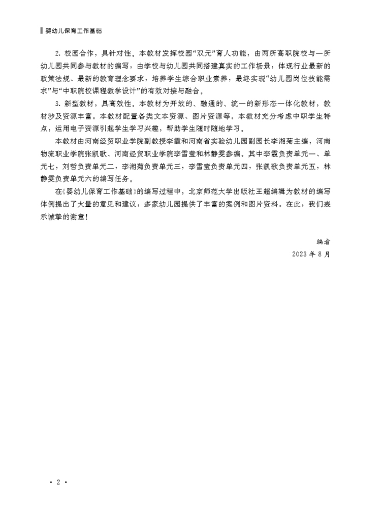 本教材符合婴幼儿托育课程的培养目标,目的是让学生对托育工作有一个整体的认知。本教材内容共分为七个单元,分别是托幼机构保育工作概述、托幼机构的构成与管理、托幼机构一日活动保育要点、托幼机构教师的沟通与表达、托幼机构规章制度、托幼机构环境基本要求、托幼机构政策法规。